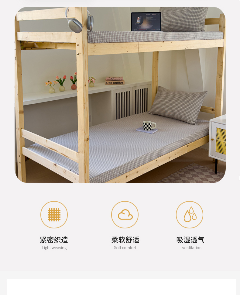 • 91家纺网 家纺一手货源 找家纺 金丝鸟家纺 2024新款A类全棉色织水洗棉单床笠系列(学生床) 浅绿红条田格