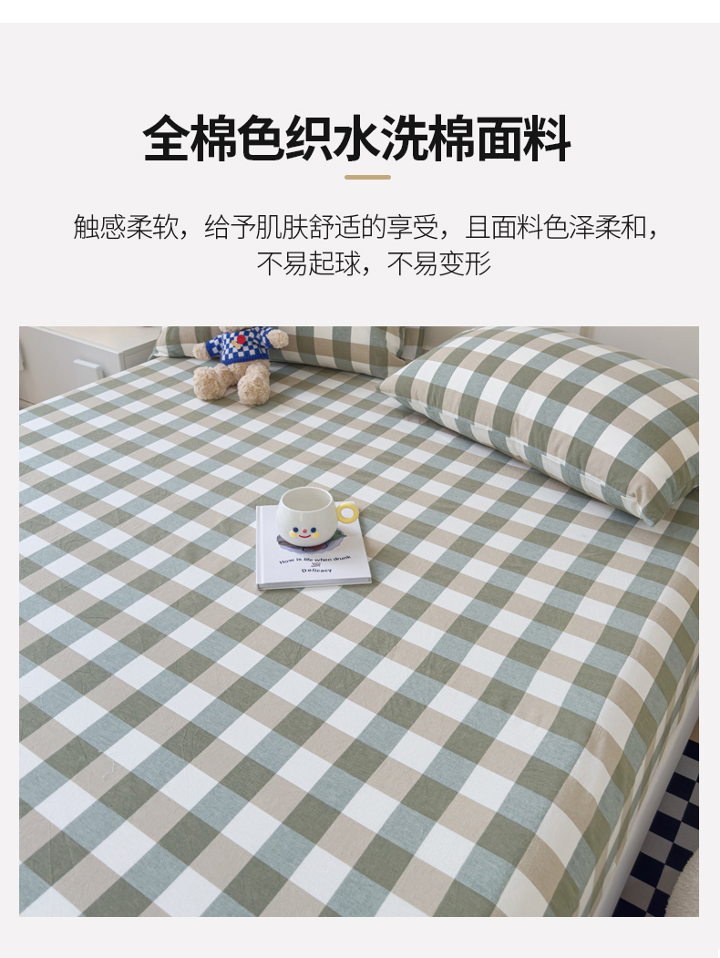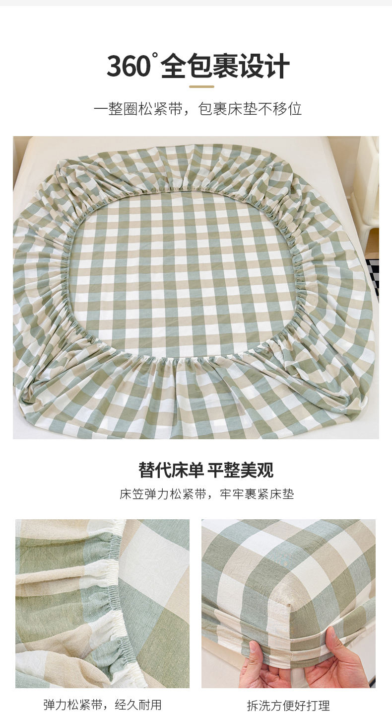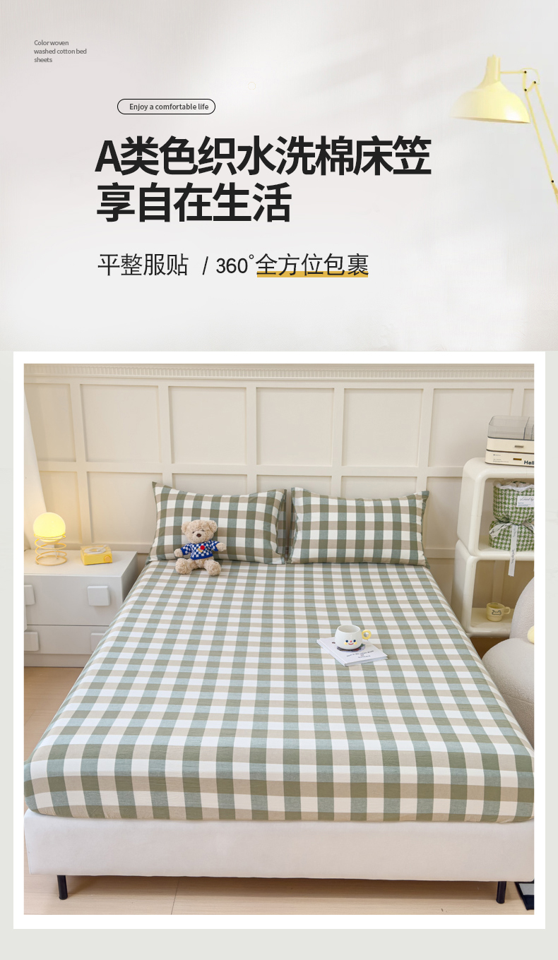 金丝鸟家纺 2024新款A类全棉色织水洗棉床笠系列 绿中格