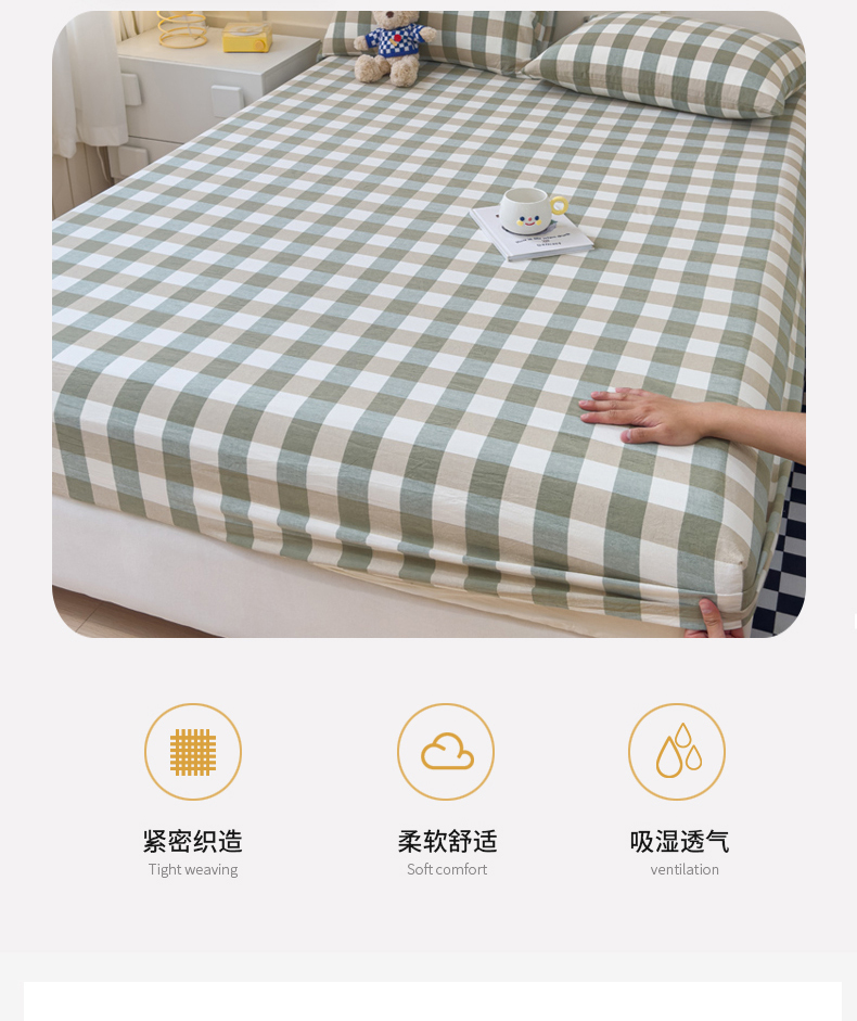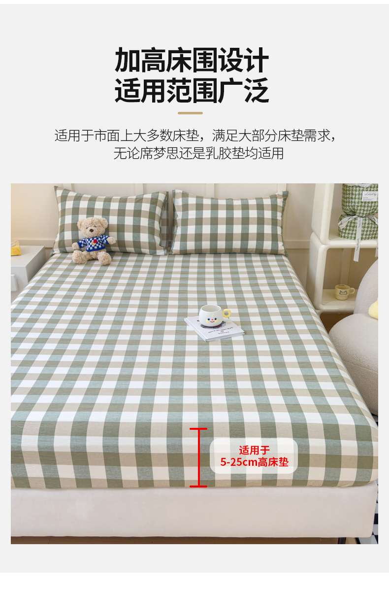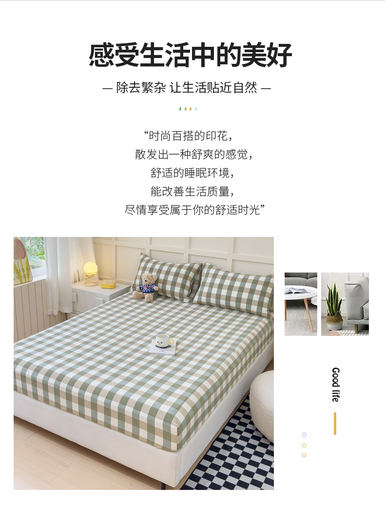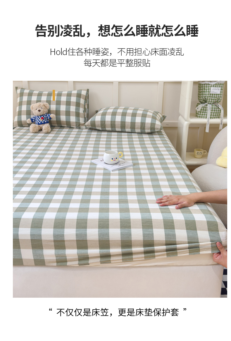 金丝鸟家纺 2024新款A类全棉色织水洗棉床笠系列 绿中格