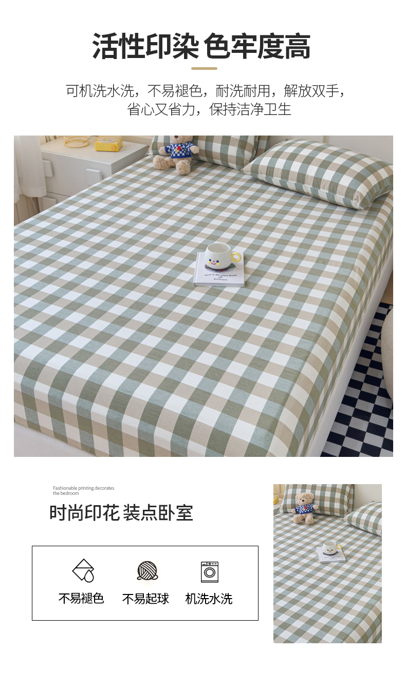 • 91家纺网 家纺一手货源 找家纺 金丝鸟家纺 2024新款A类全棉色织水洗棉床笠系列 绿中格