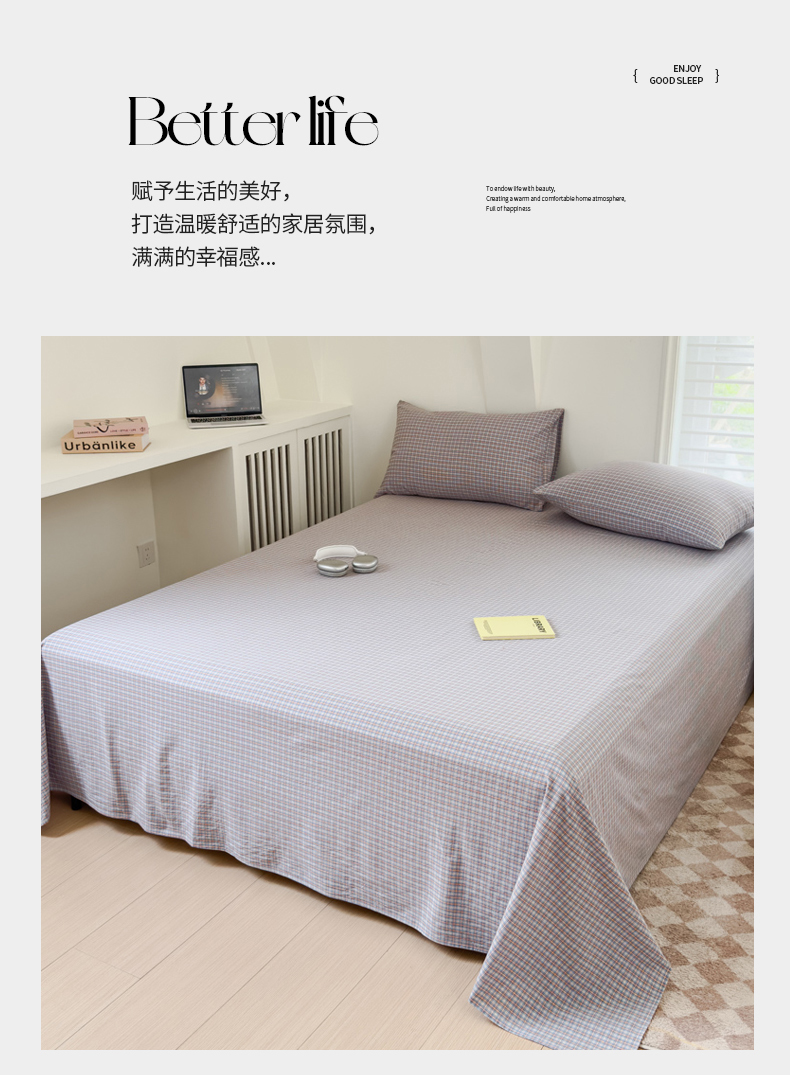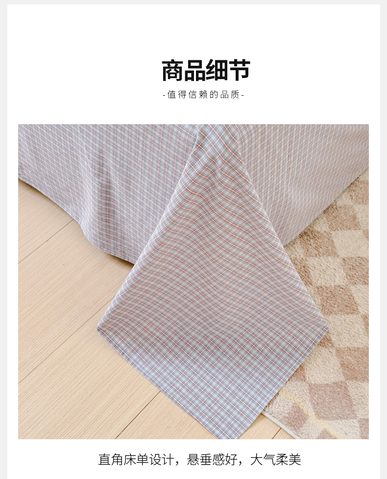 金丝鸟家纺 2024新款A类全棉色织水洗棉单床单系列 蓝红田格