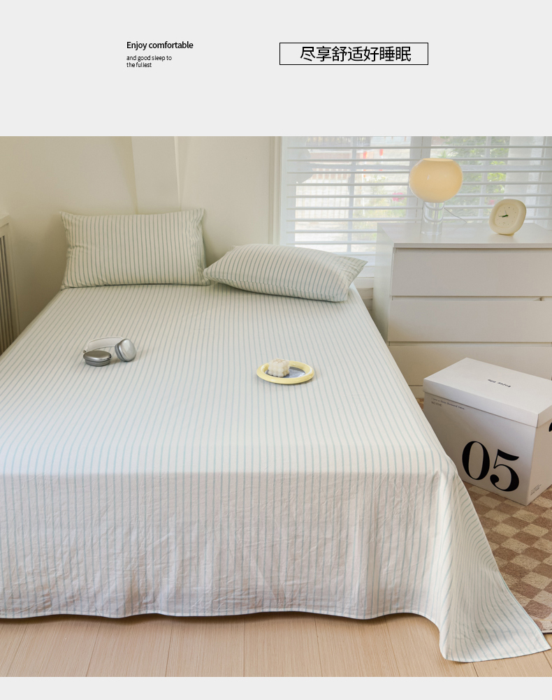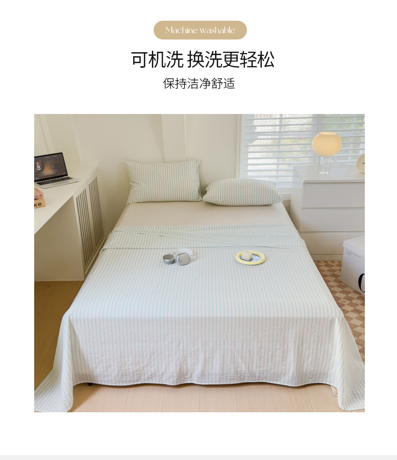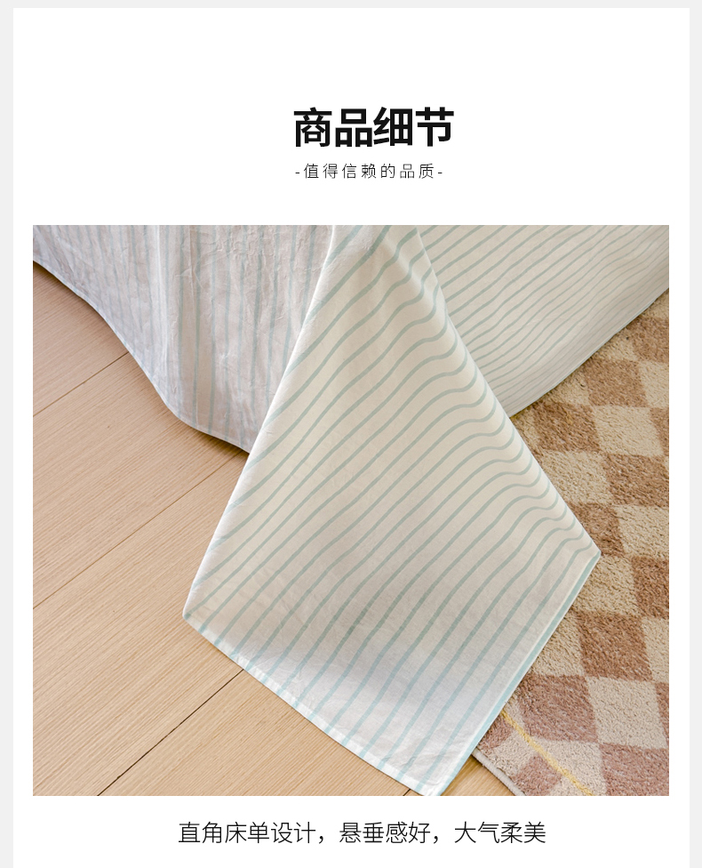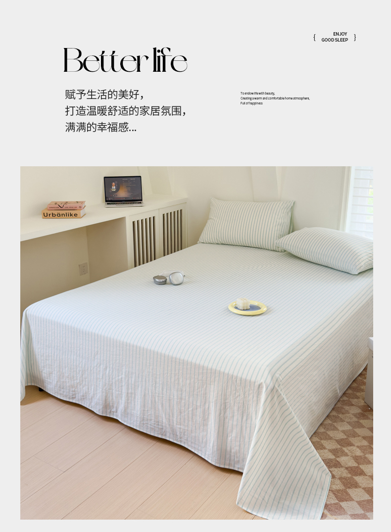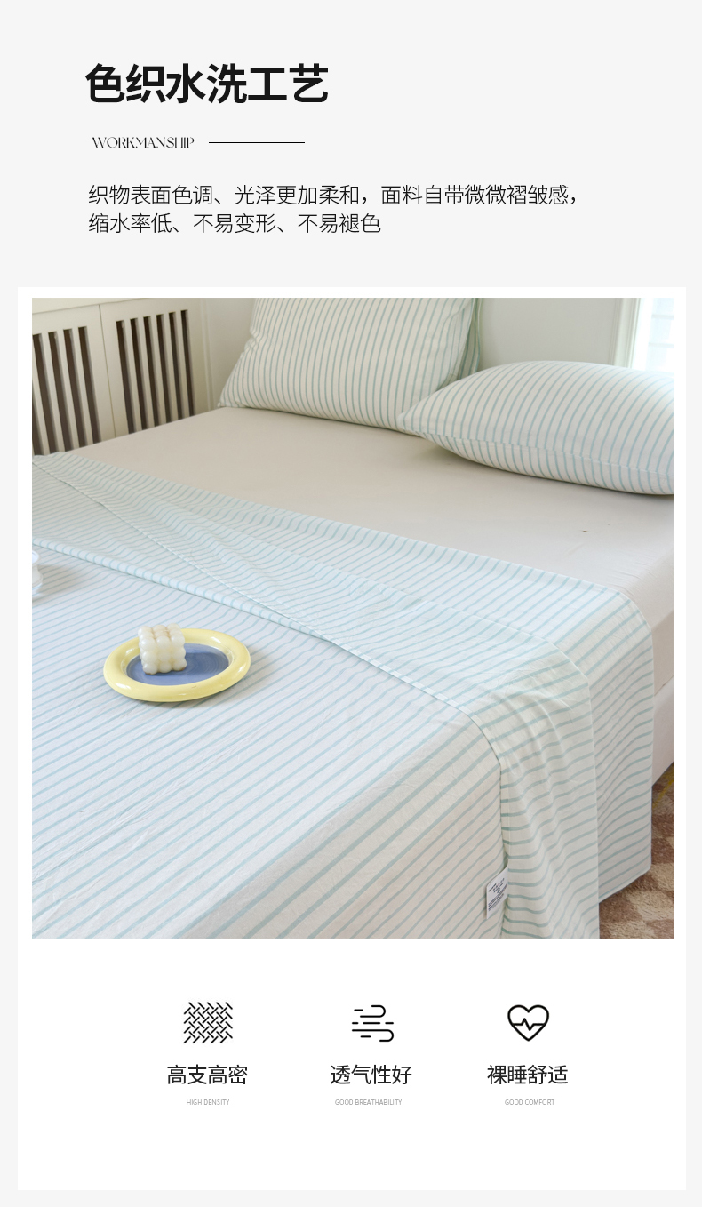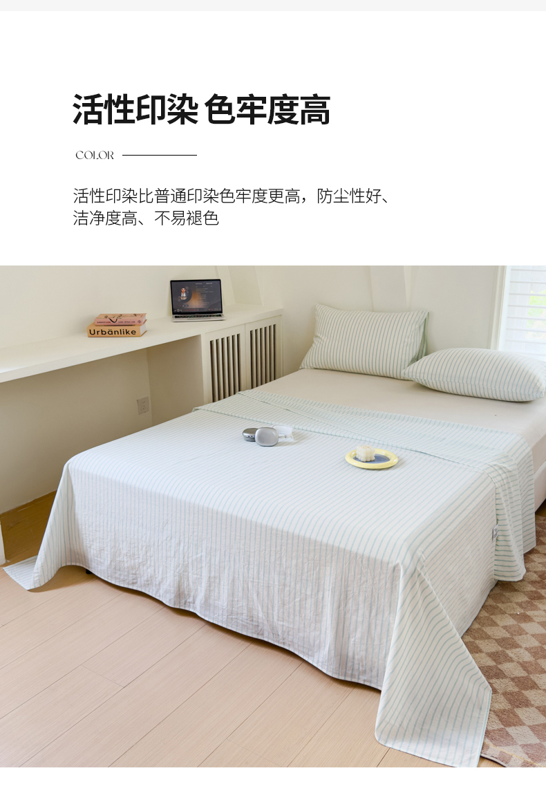 金丝鸟家纺 2024新款A类全棉色织水洗棉单床单系列 浅绿中条