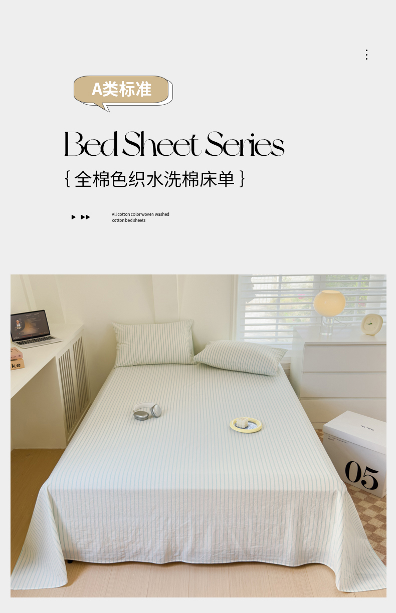 • 91家纺网 家纺一手货源 找家纺 金丝鸟家纺 2024新款A类全棉色织水洗棉单床单系列 浅绿中条
