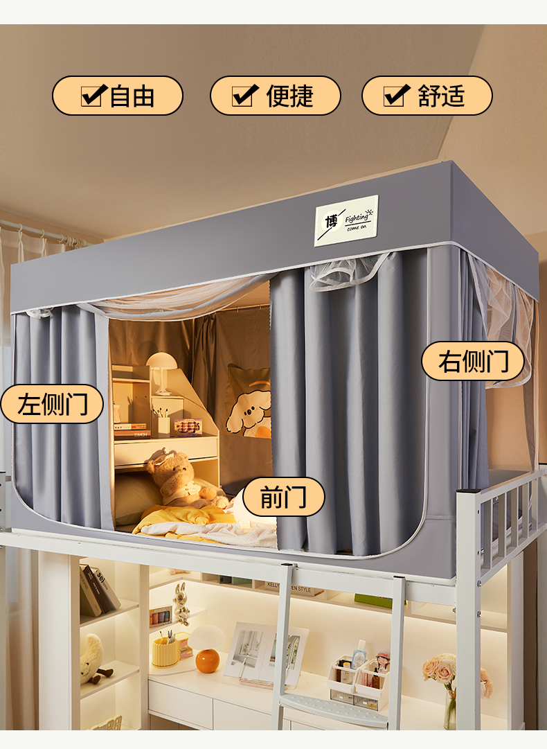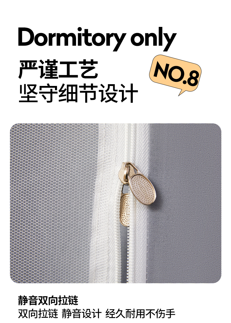 当前位置: 91家纺网 > 商品网购 > 床上用品 > 蚊帐 > 学生蚊帐 > 夏彩 2024学生新款纯色强遮光三开门防蚊防尘强遮光拉链蚊帐-88603 88603-深灰