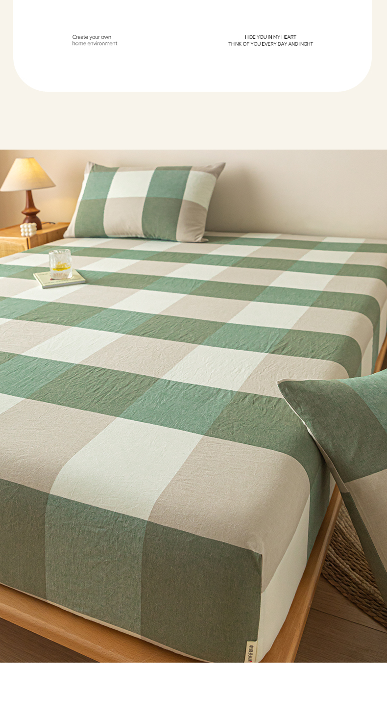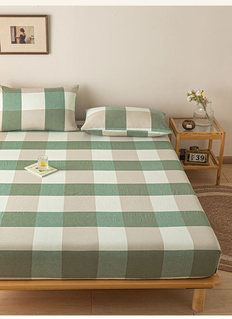 卡伦家纺 2025全棉色织水洗棉单层床笠席梦思保护套 绿大格