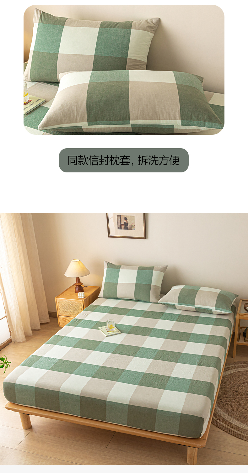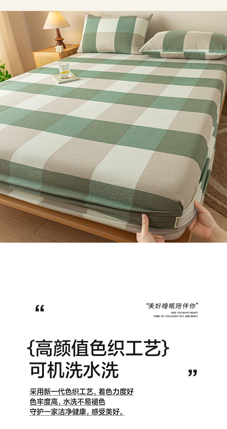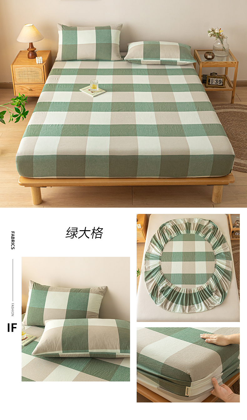 • 91家纺网 家纺一手货源 找家纺 卡伦家纺 2025全棉色织水洗棉单层床笠席梦思保护套 绿大格