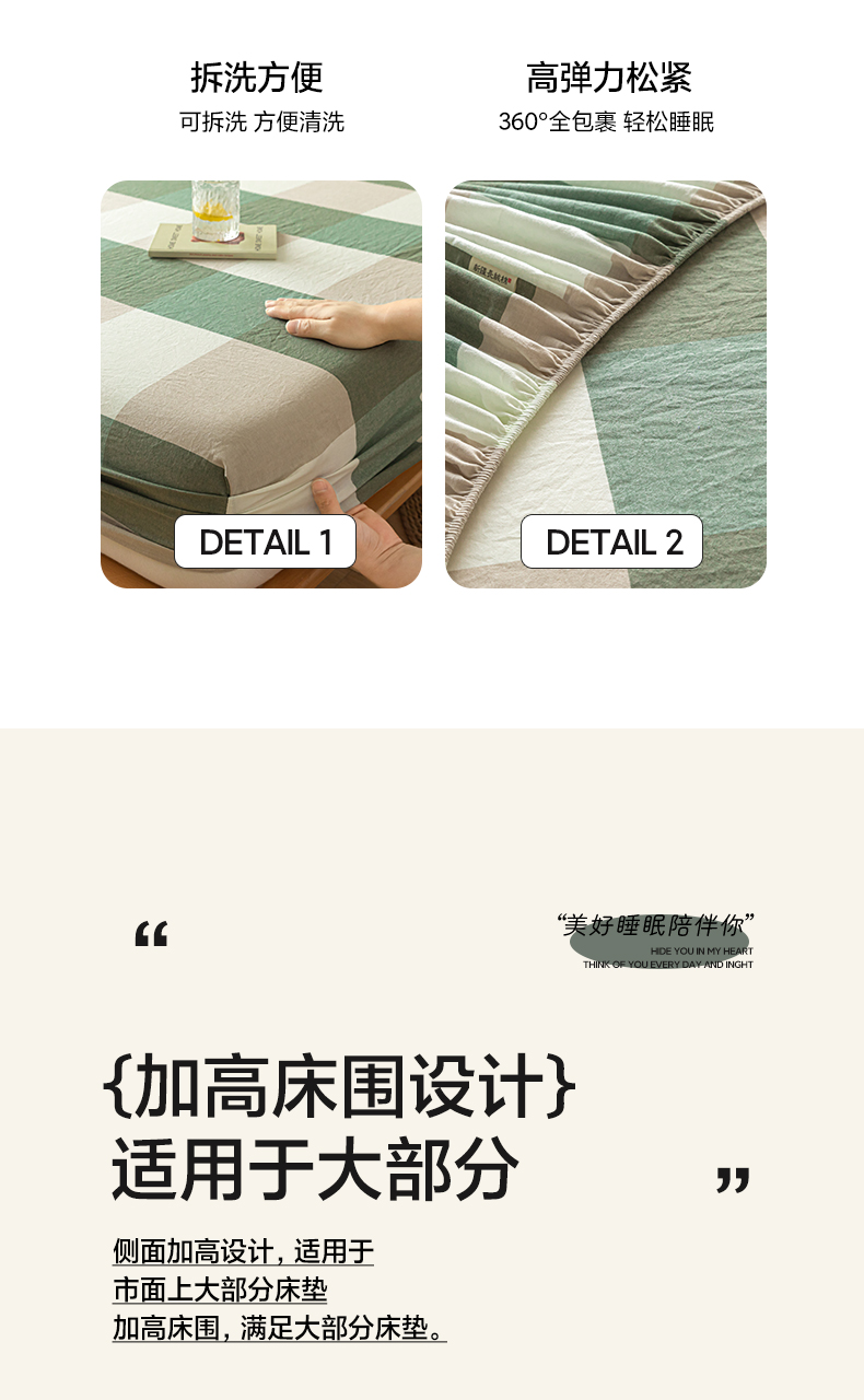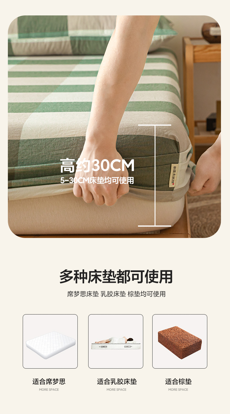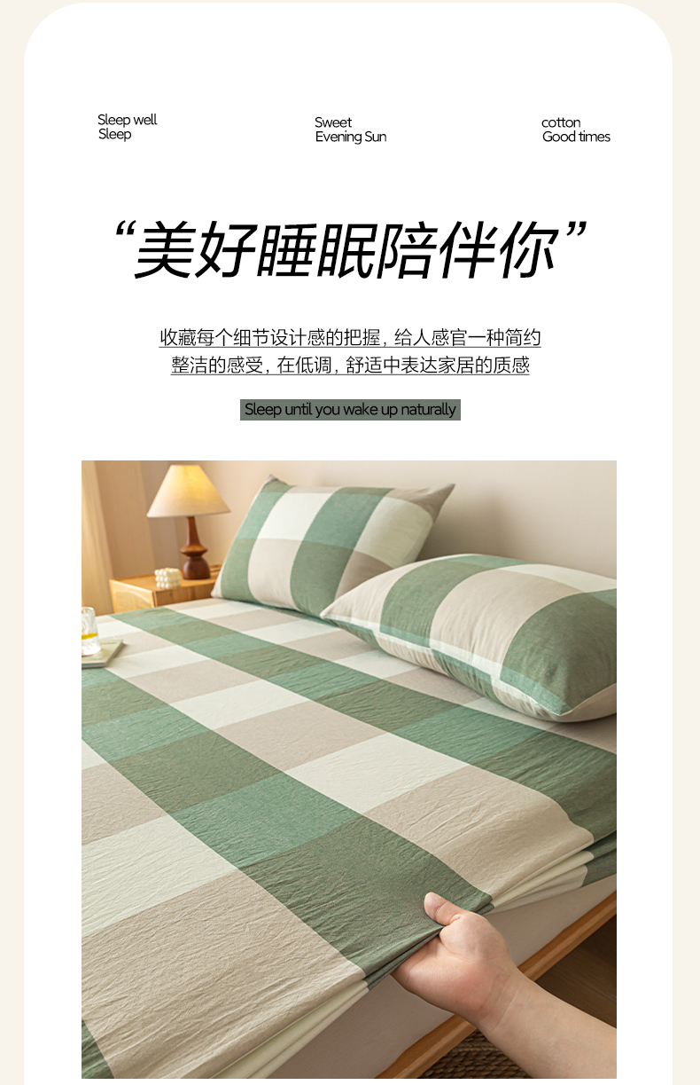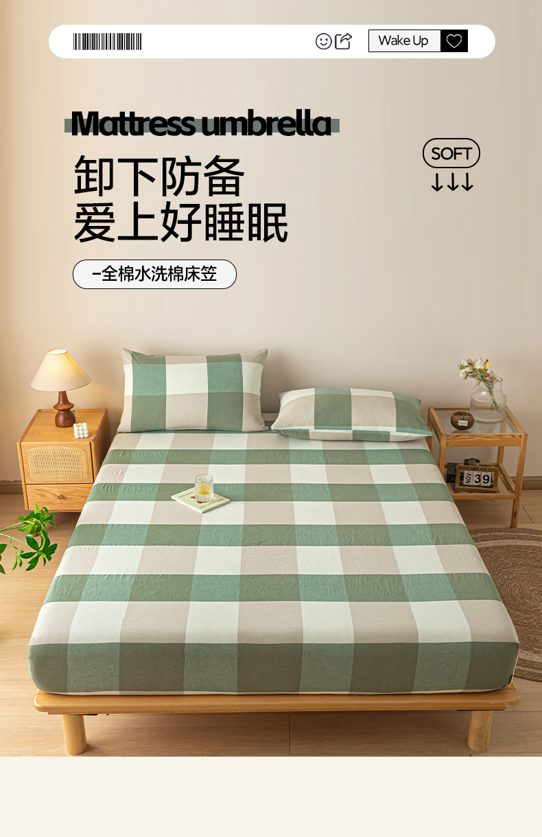 • 91家纺网 家纺一手货源 找家纺 卡伦家纺 2025全棉色织水洗棉单层床笠席梦思保护套 绿大格