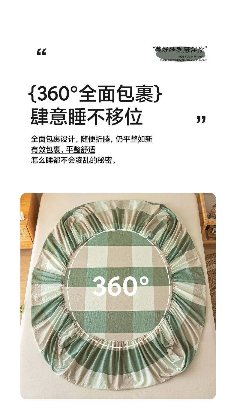 当前位置: 91家纺网 > 商品网购 > 床上用品 > 床笠 > 卡伦家纺 2025全棉色织水洗棉单层床笠席梦思保护套 绿大格