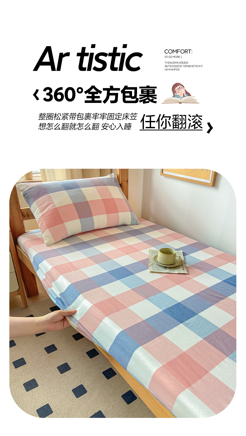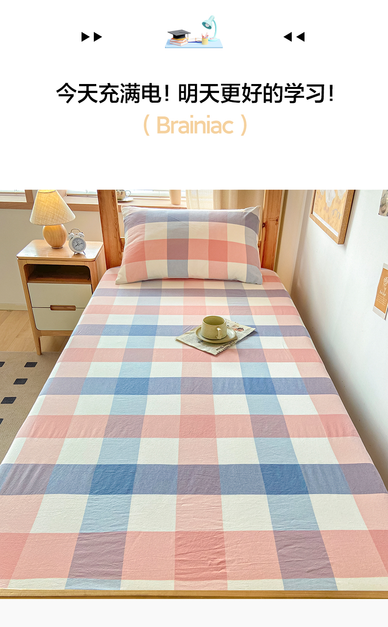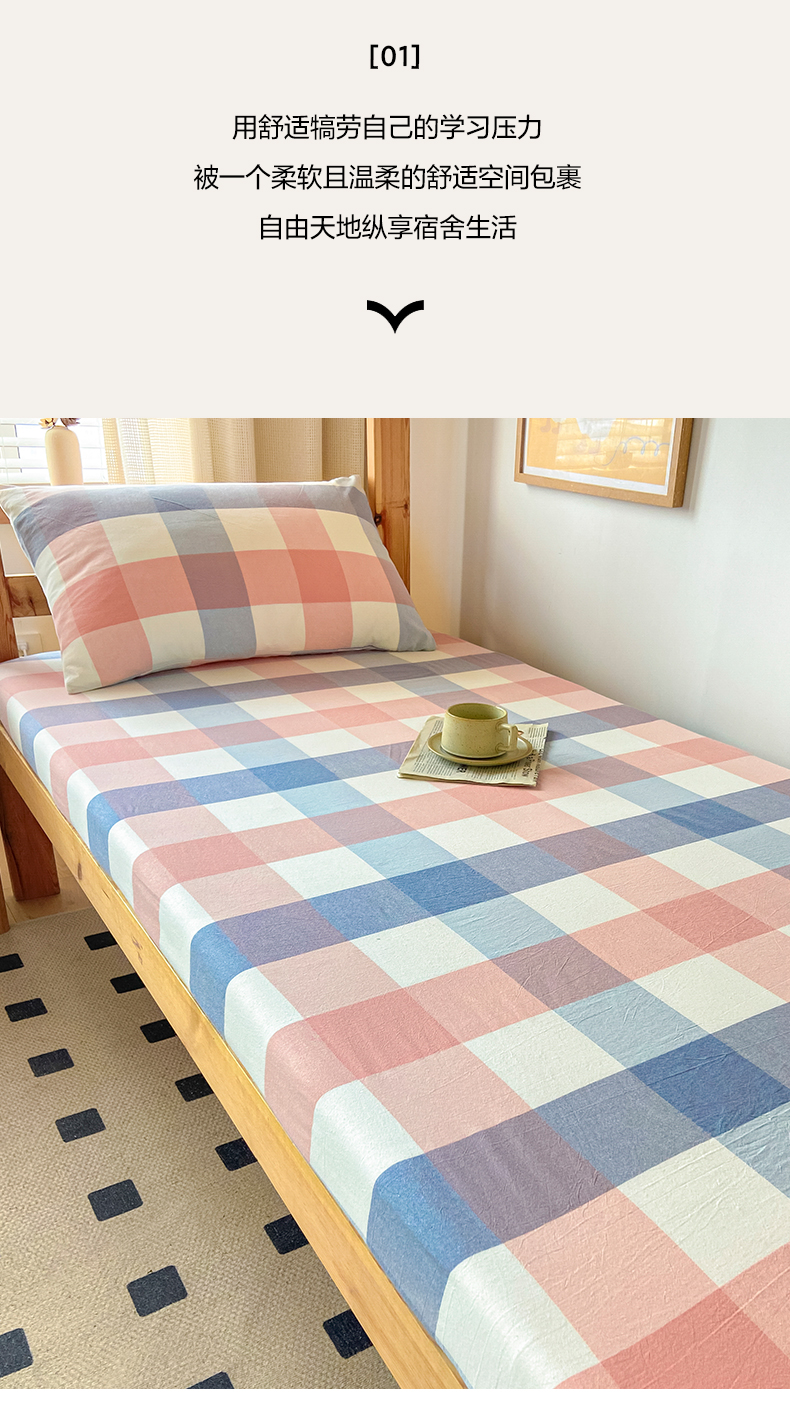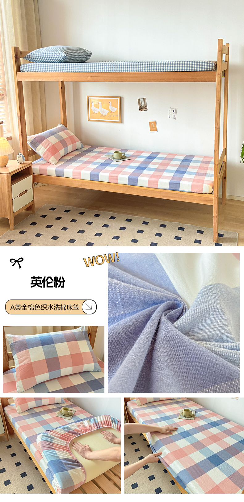 卡伦家纺 2025新款全棉色织水洗棉单层宿舍学生床笠 英伦粉