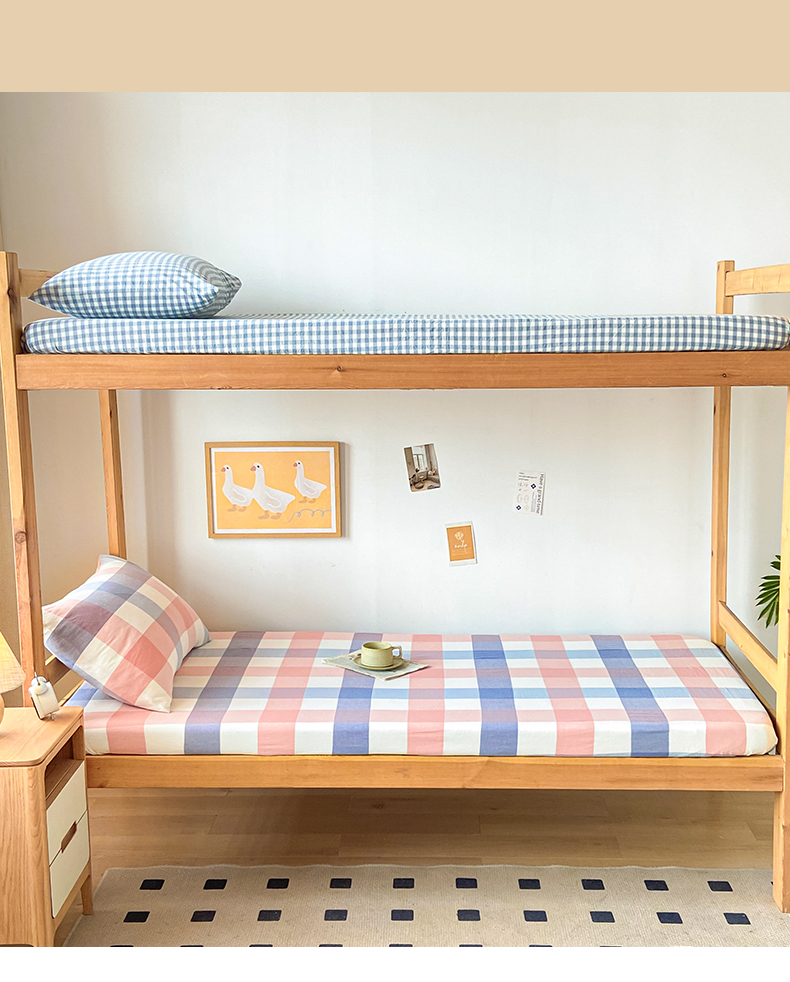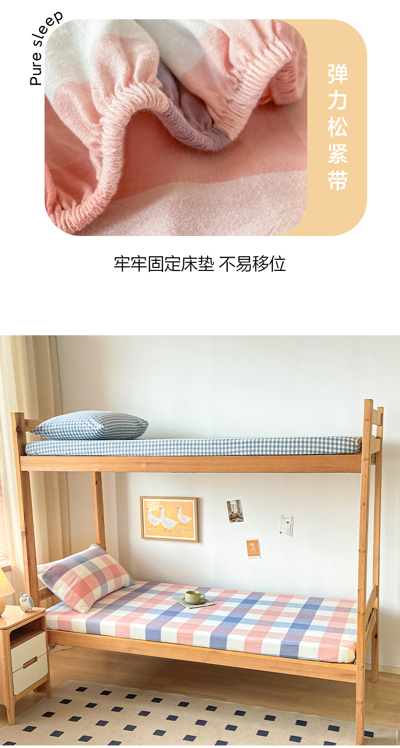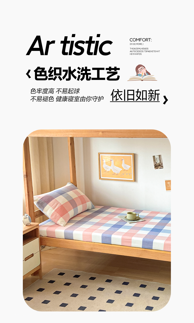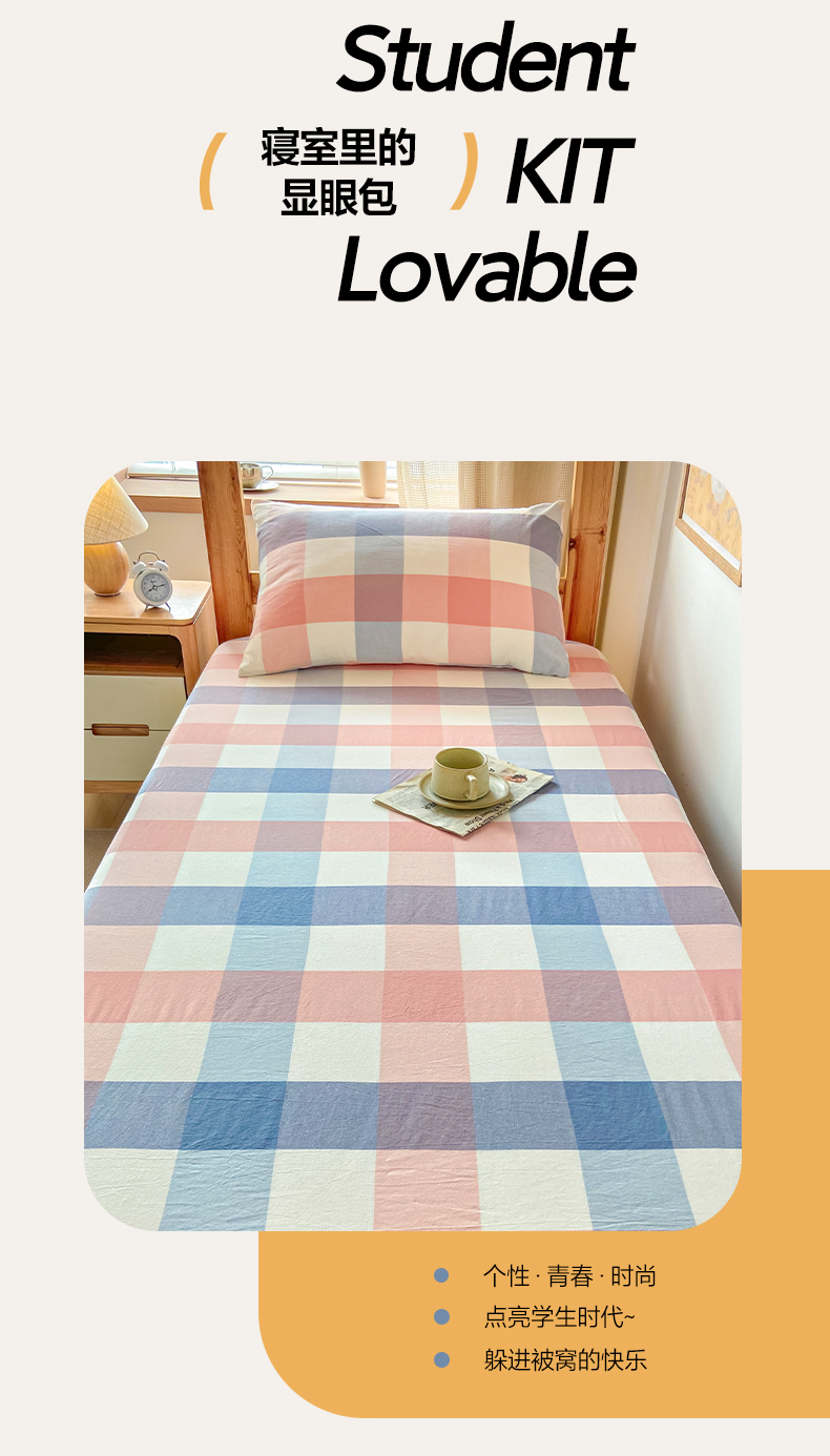 卡伦家纺 2025新款全棉色织水洗棉单层宿舍学生床笠 英伦粉