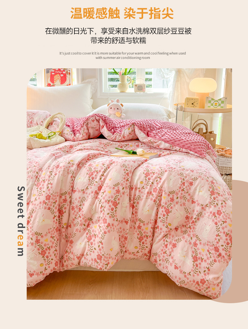 • 91家纺网 家纺一手货源 找家纺 玉相逢 2024新款水洗棉双层纱豆豆被加绒被子被芯直播豆豆绒被被子被芯冬被春秋被 小桃兔兔