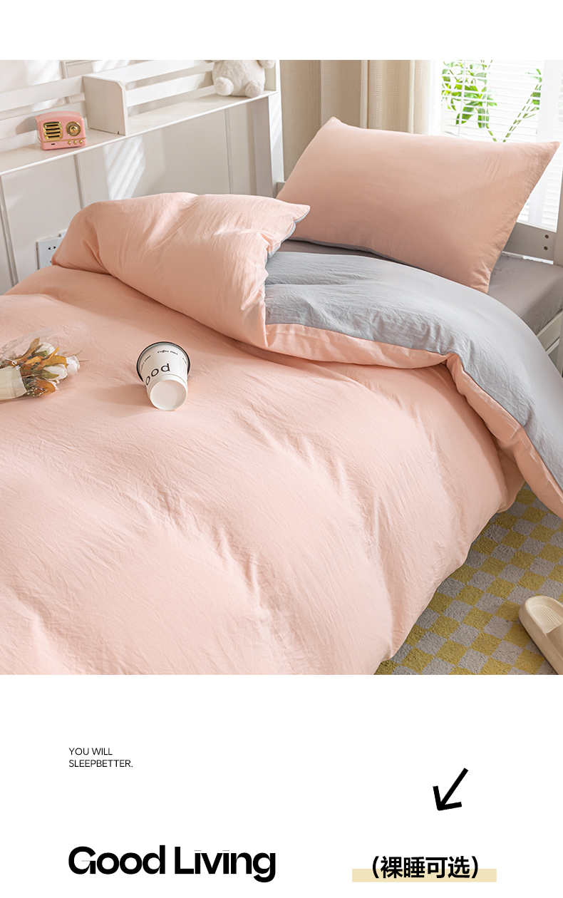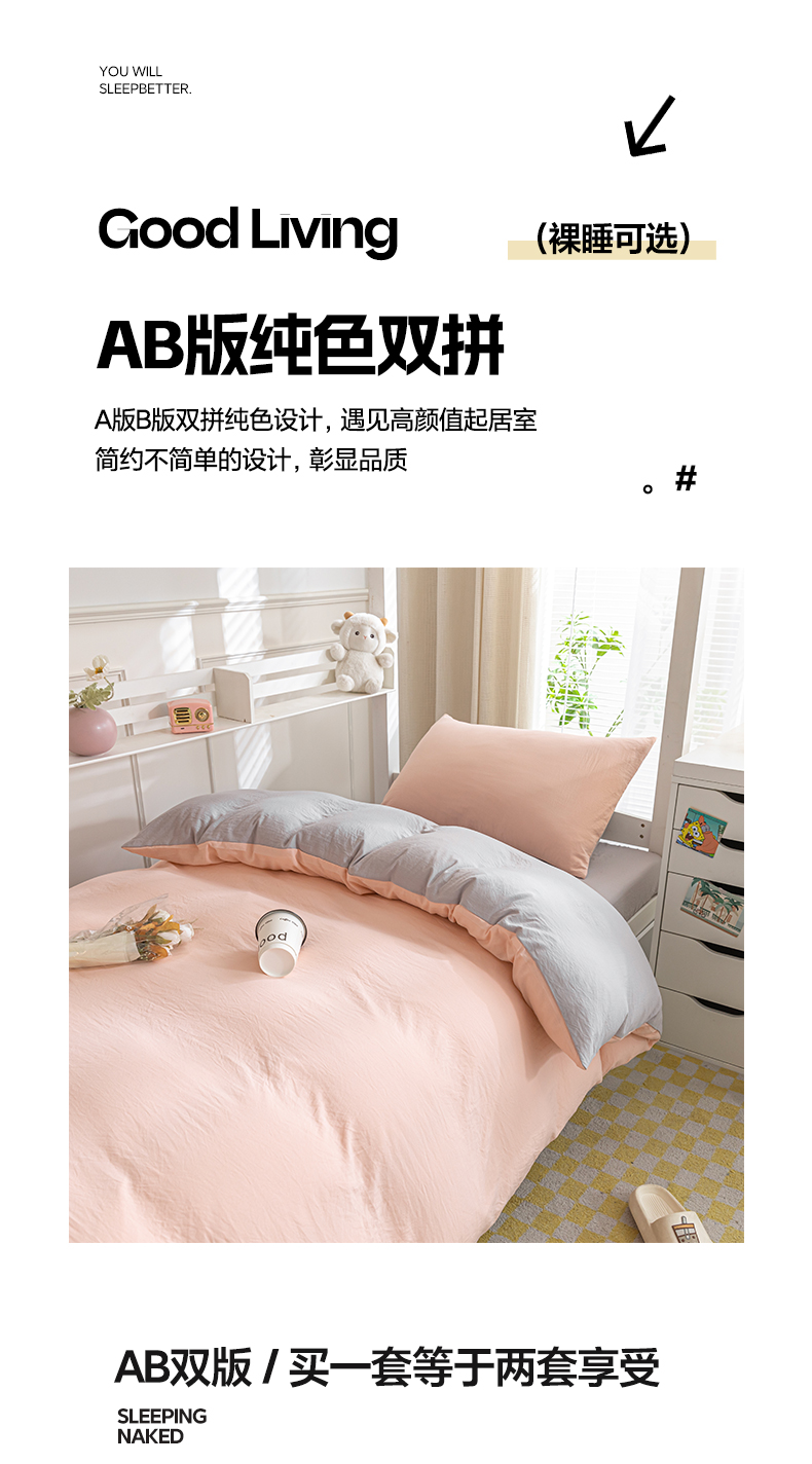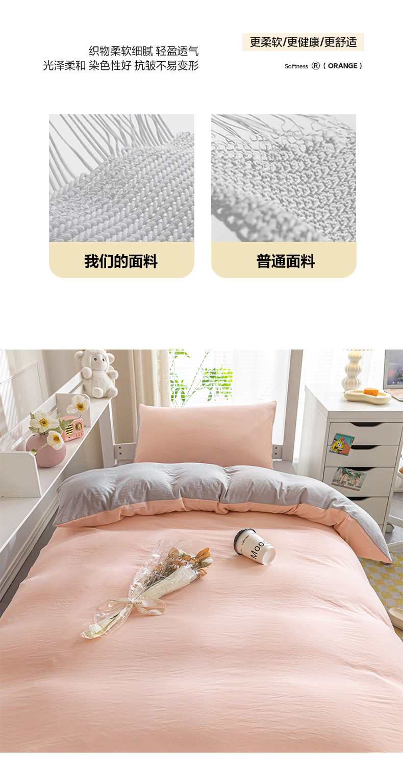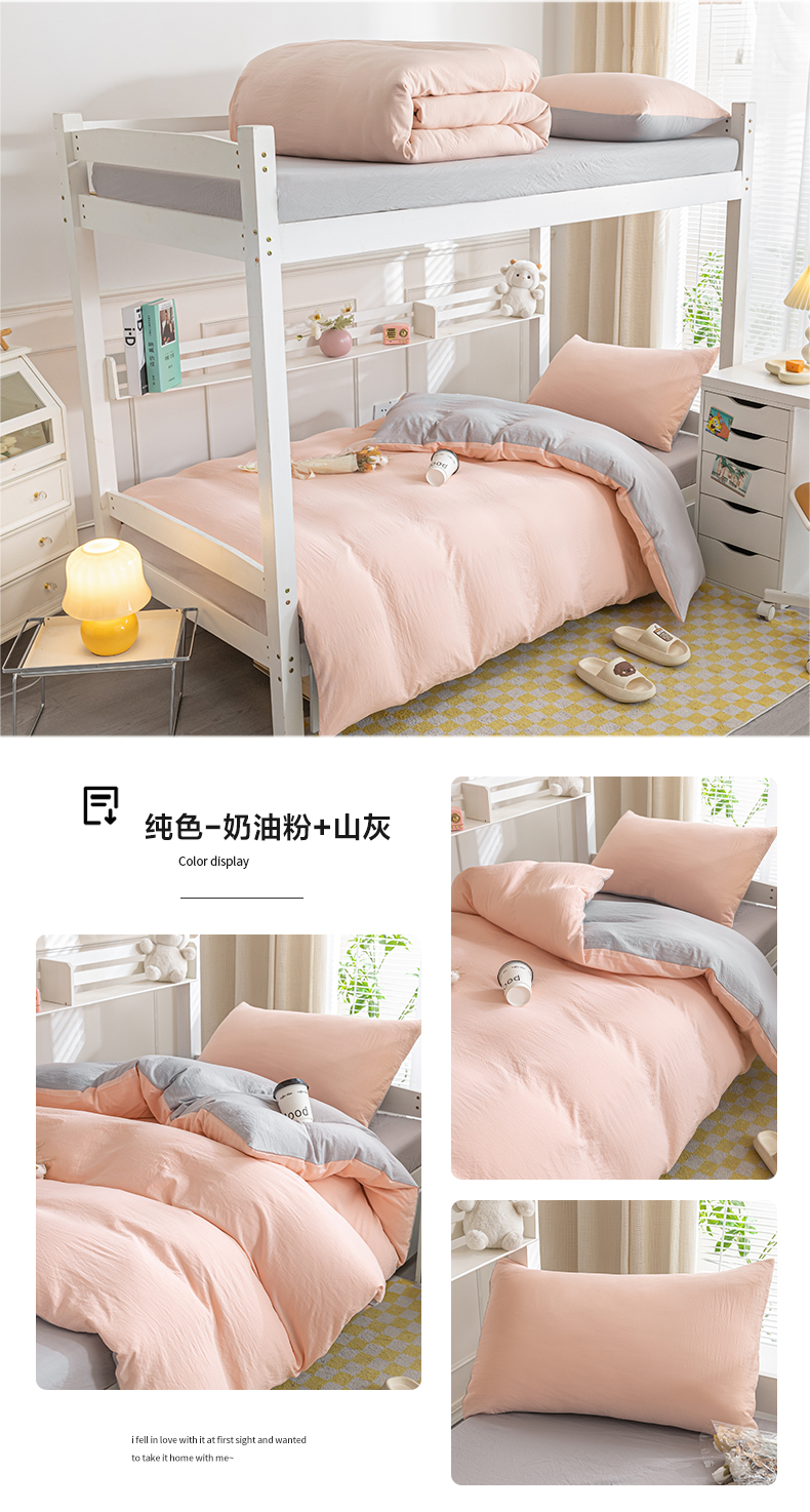 当前位置: 91家纺网 > 商品网购 > 床品套件 > 多件套 > 多件套 > 2024新款纯色双拼水洗棉学生三件套(床笠床套款) 纯色-奶油粉+山灰