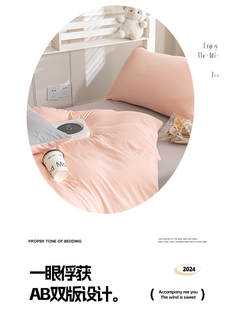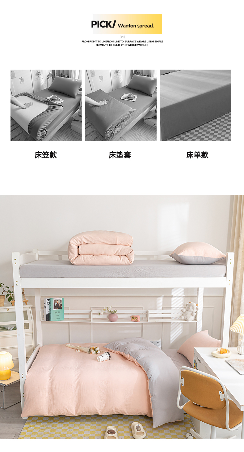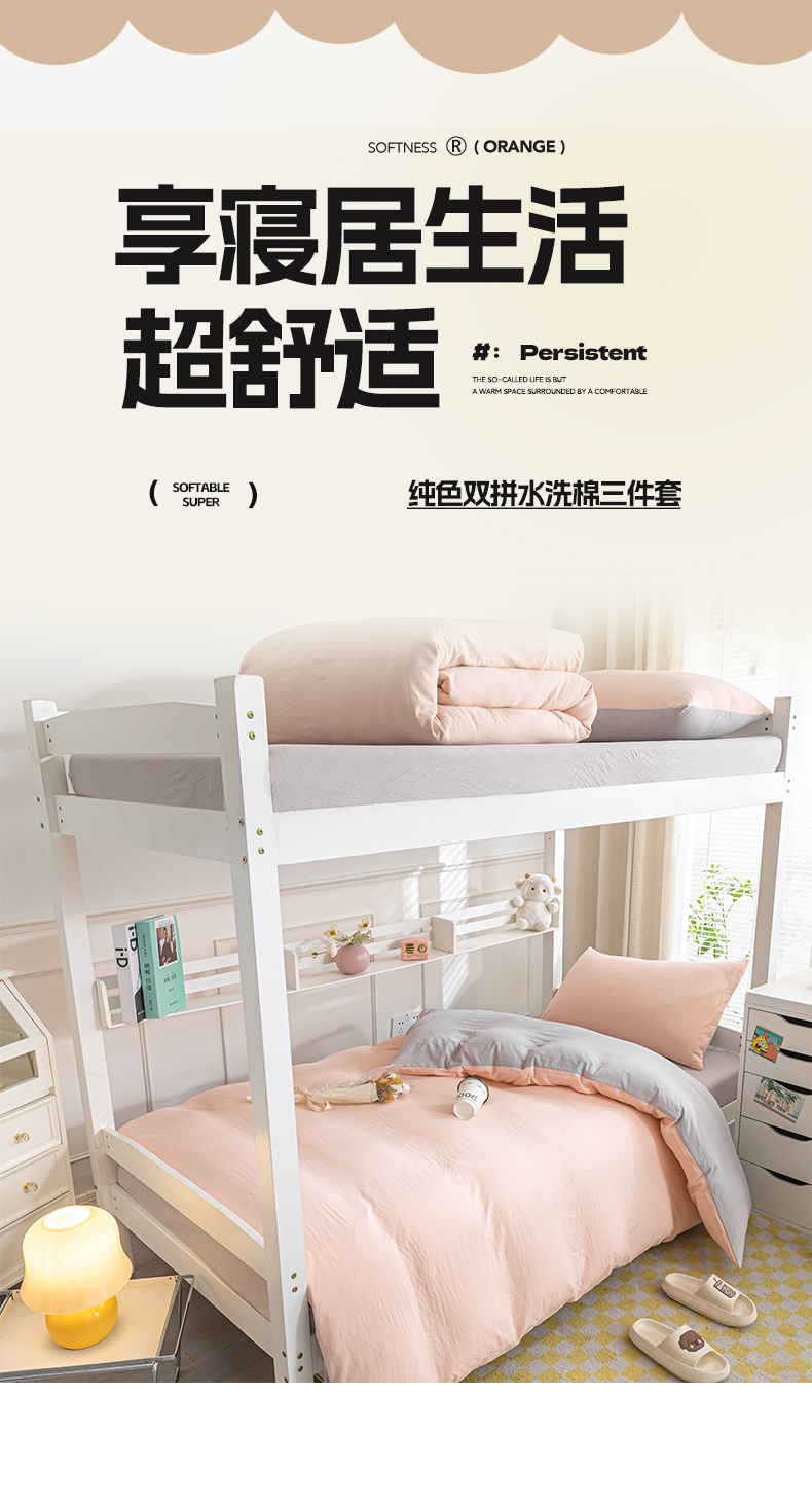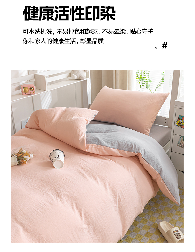 当前位置: 91家纺网 > 商品网购 > 床品套件 > 多件套 > 多件套 > 2024新款纯色双拼水洗棉学生三件套(床笠床套款) 纯色-奶油粉+山灰