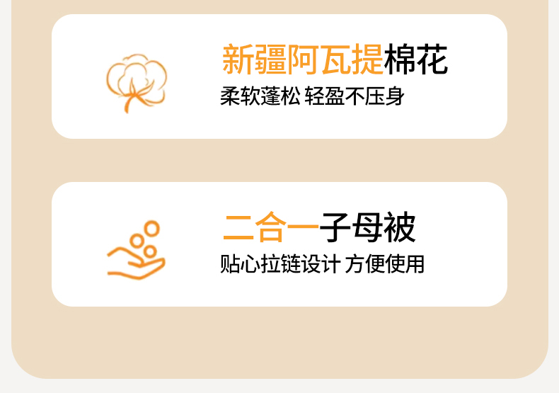 180*220cm拉链款子母被:4斤+6斤【总重约10斤】 | ¥145.00 |