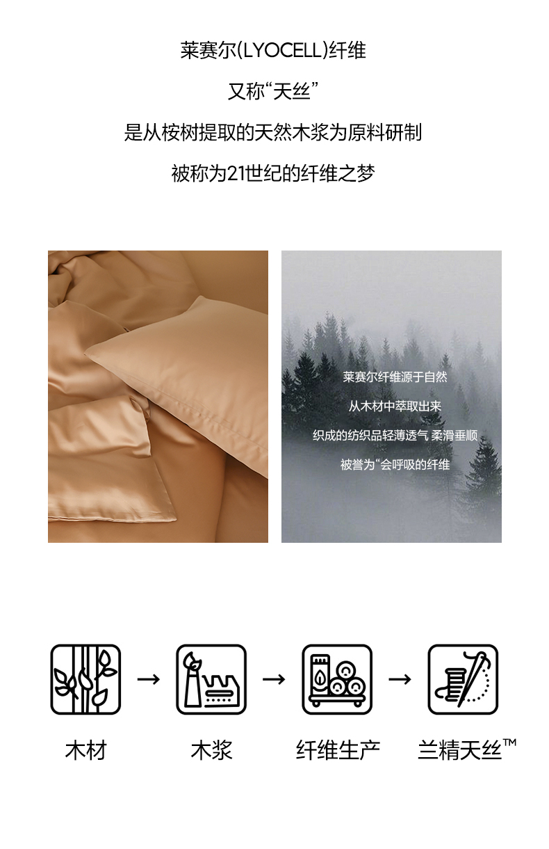 商品名称:轩和 2025新款A类LF60S兰精天丝单品枕套 拿铁咖