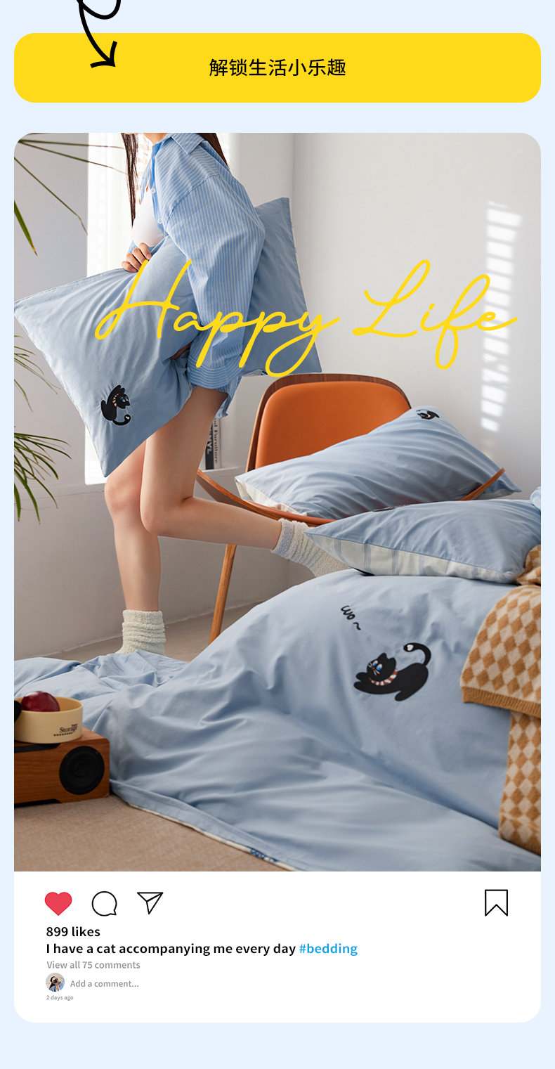 当前位置: 91家纺网 > 商品网购 > 床品套件 > 四件套 > 全棉普通四件套 > 禾时 2024新款爆品全棉纯棉印花刺绣四件套学生宿舍三件套卡通小清新 猫咪卡卡-卡通系