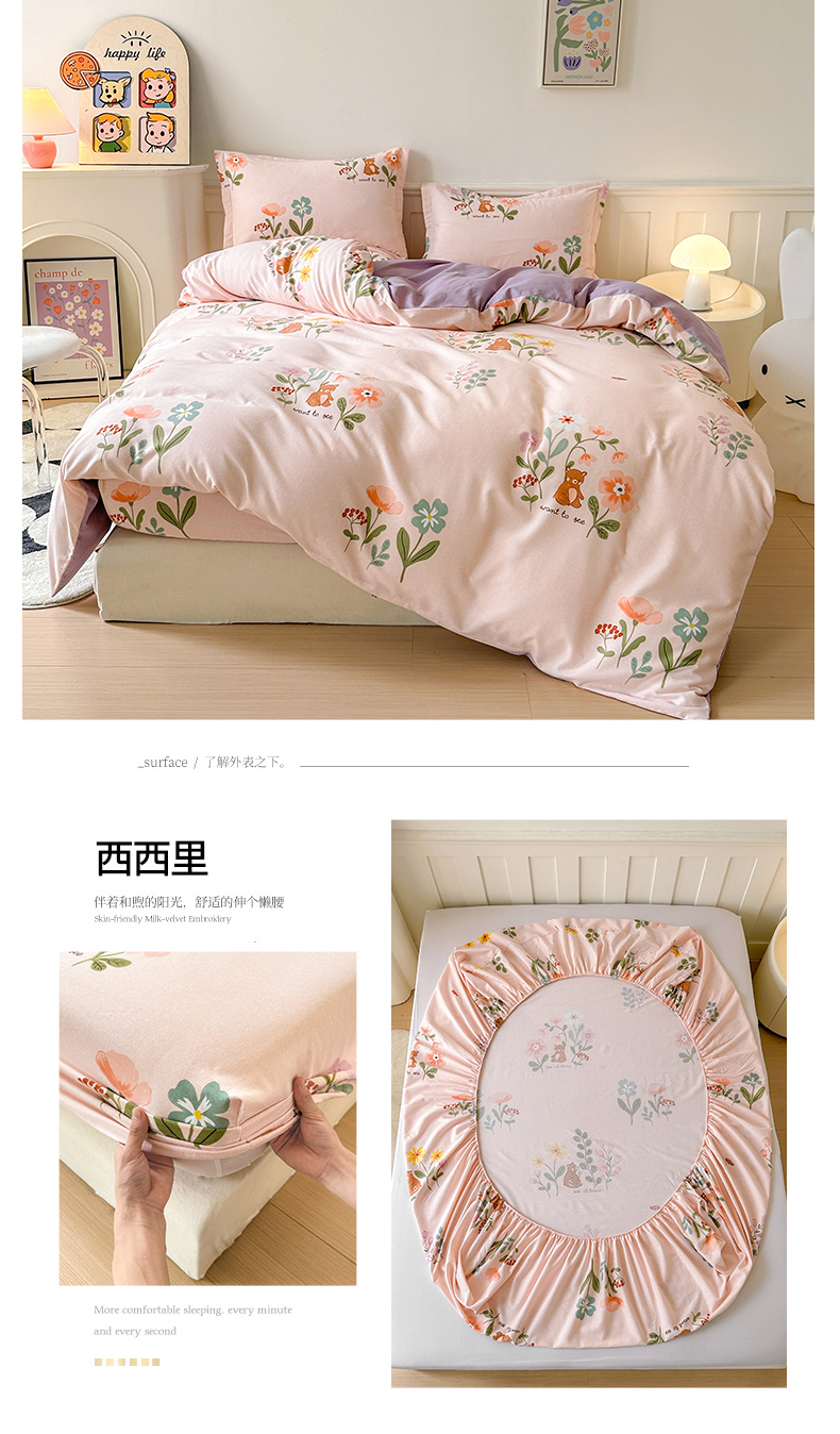 商品名称:2025新款加厚生态磨毛床笠四件套 西西里
