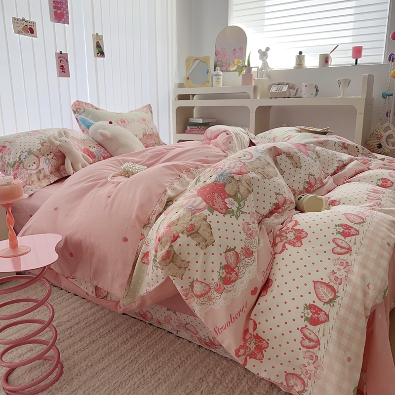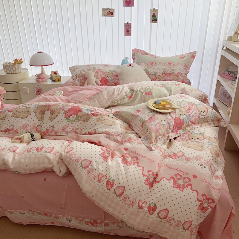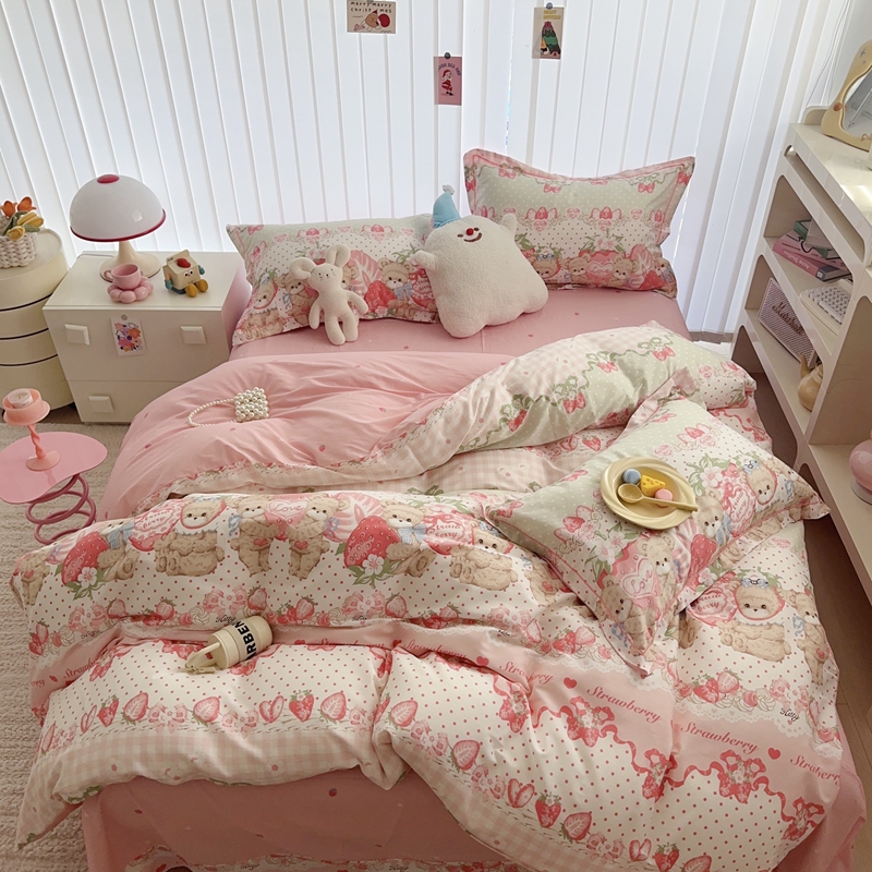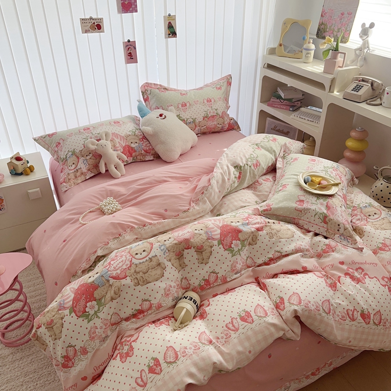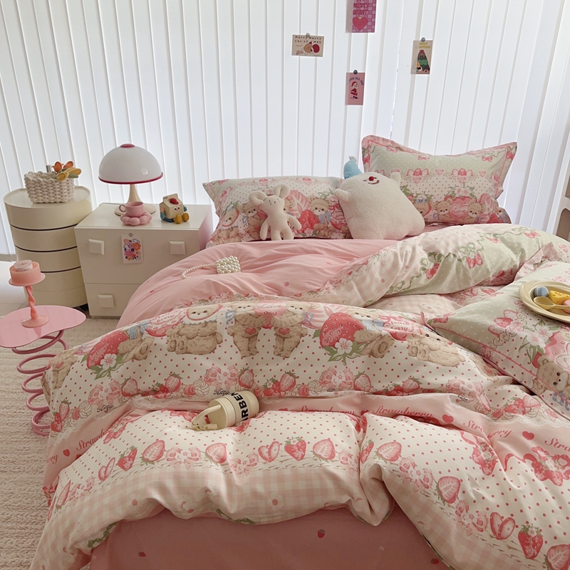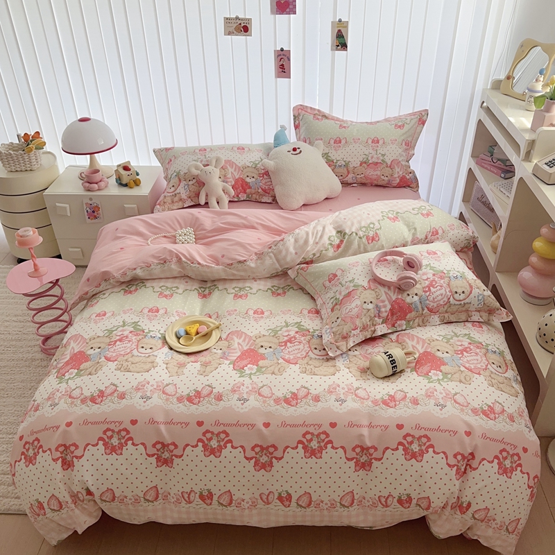 于果 2024新款13070全棉印花四件套 小熊草莓