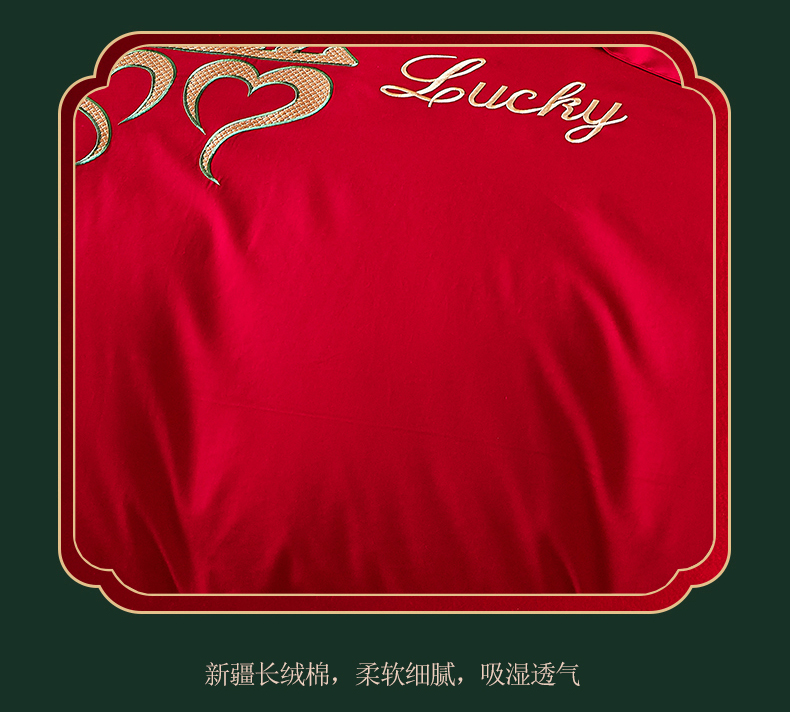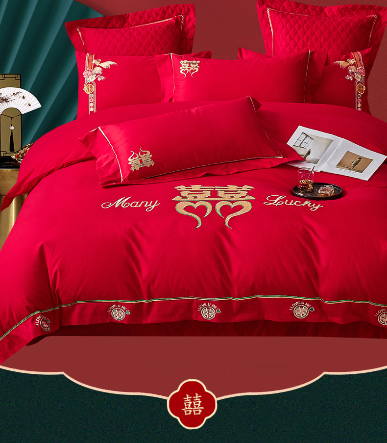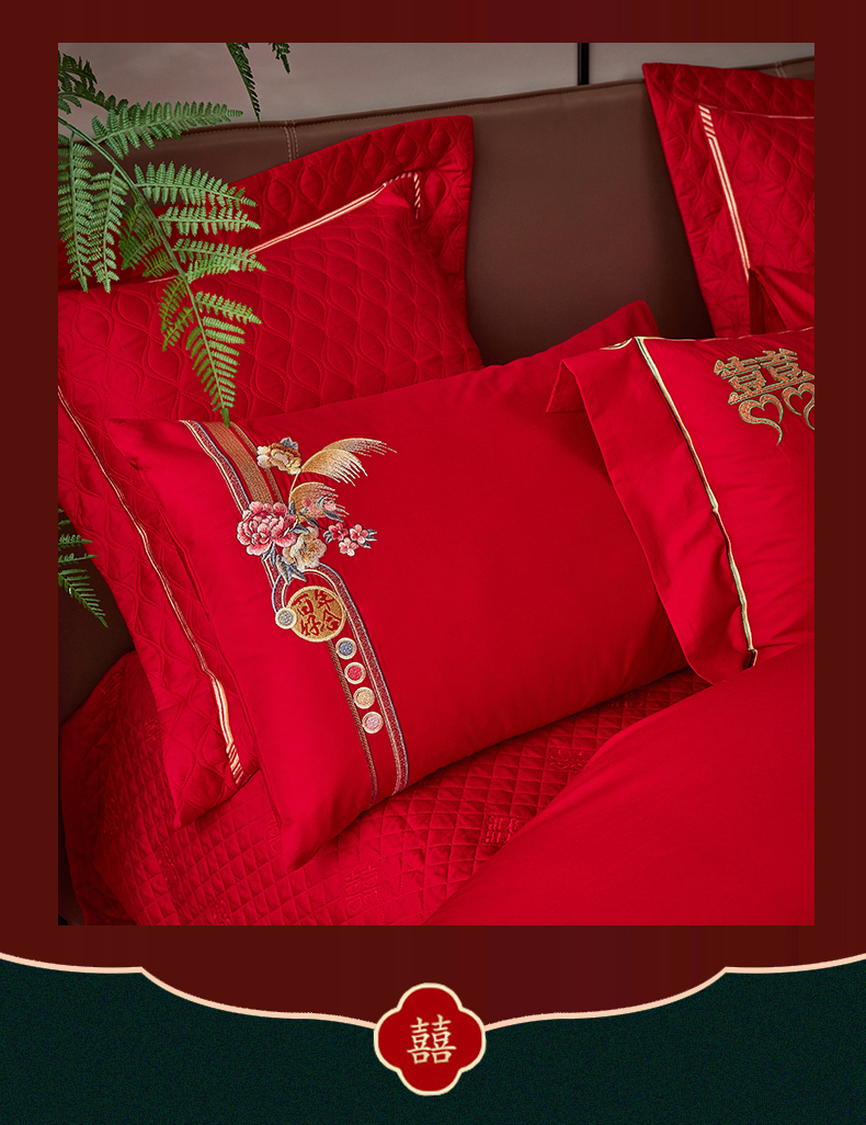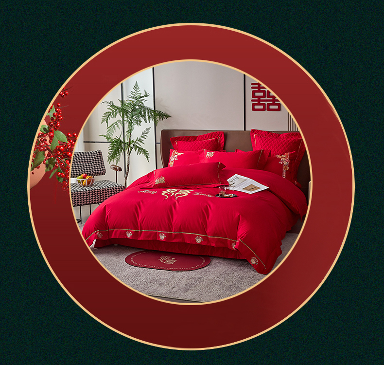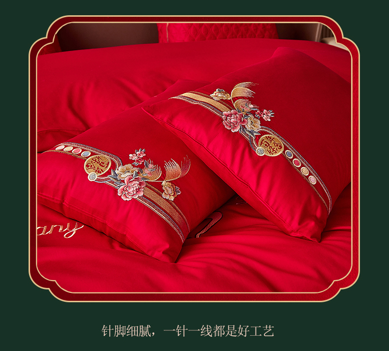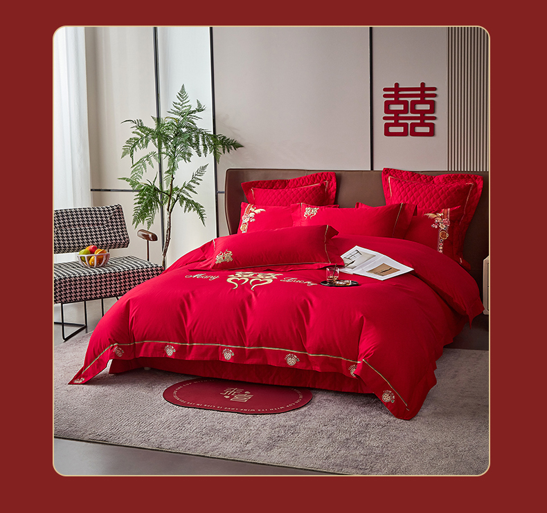 当前位置: 91家纺网 > 商品网购 > 床品套件 > 四件套 > 全棉普通四件套 > 2025新款40s全棉长绒棉新中式刺绣婚庆四件套多件套 诺言