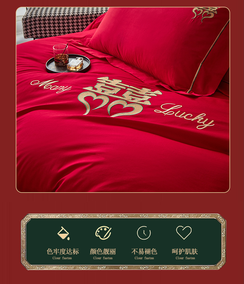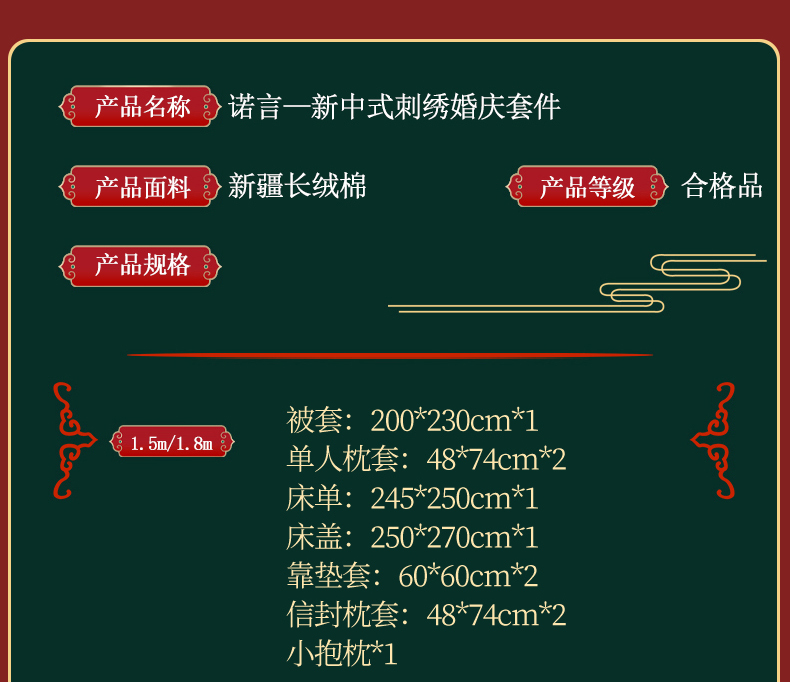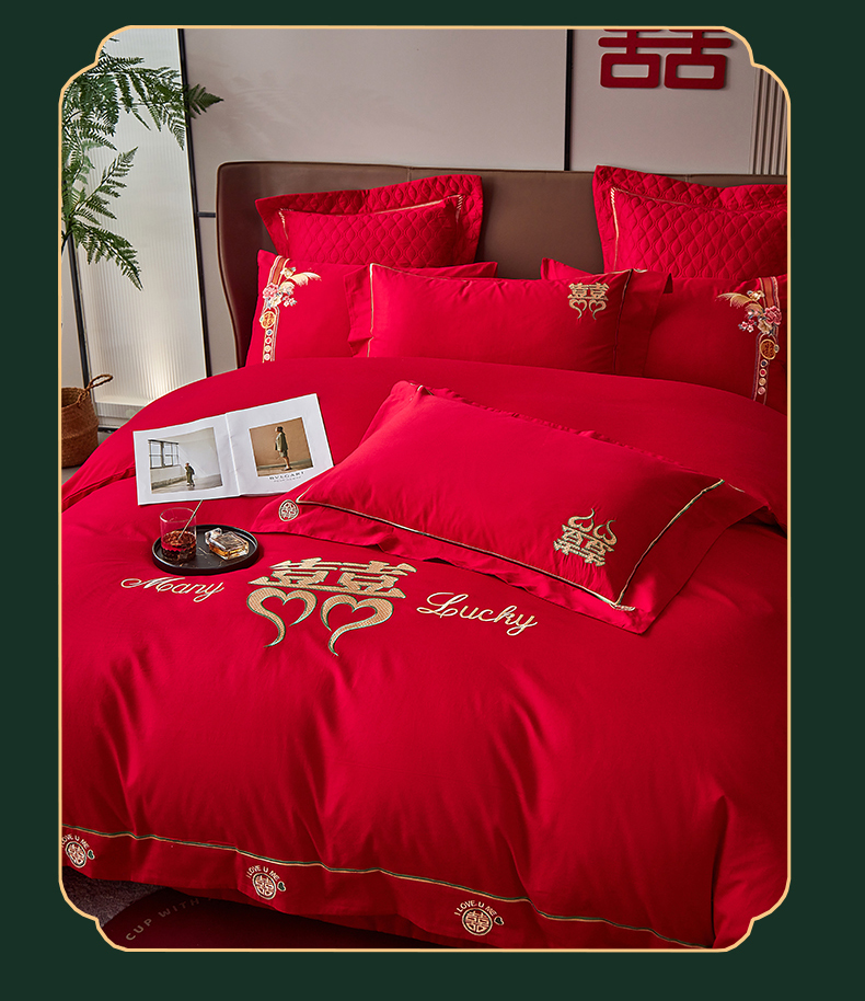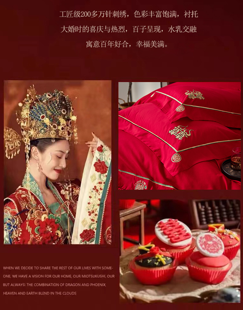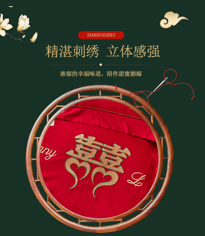 当前位置: 91家纺网 > 商品网购 > 床品套件 > 四件套 > 全棉普通四件套 > 2025新款40s全棉长绒棉新中式刺绣婚庆四件套多件套 诺言