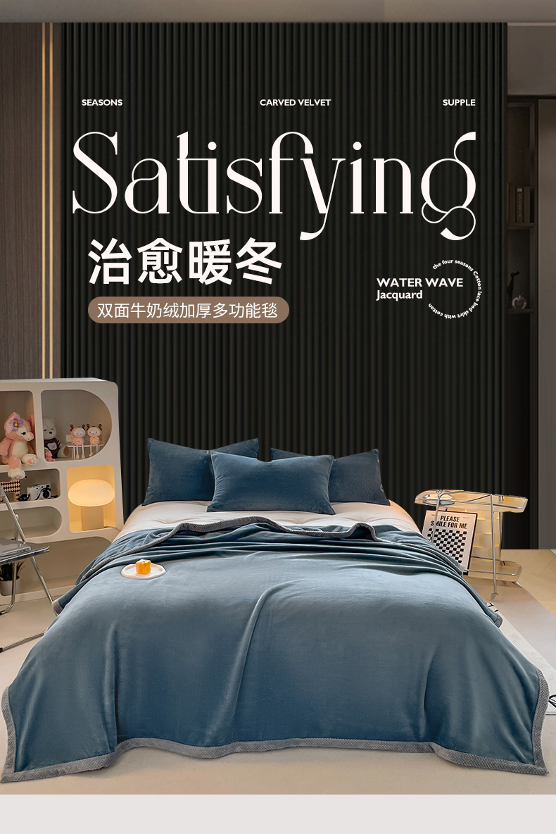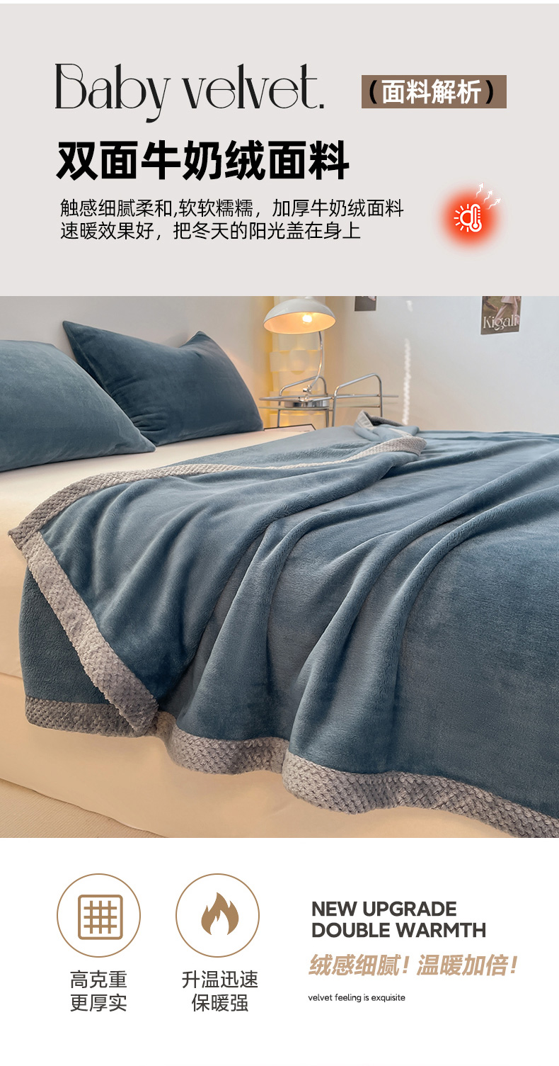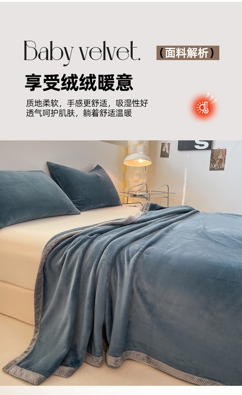 当前位置: 91家纺网 > 商品网购 > 毛毯休闲毯绒毯 > 毛毯 > 21度C 2024新款牛奶绒纯色320克 加厚多功能菠萝格包边毯 蓝灰