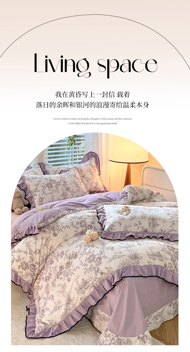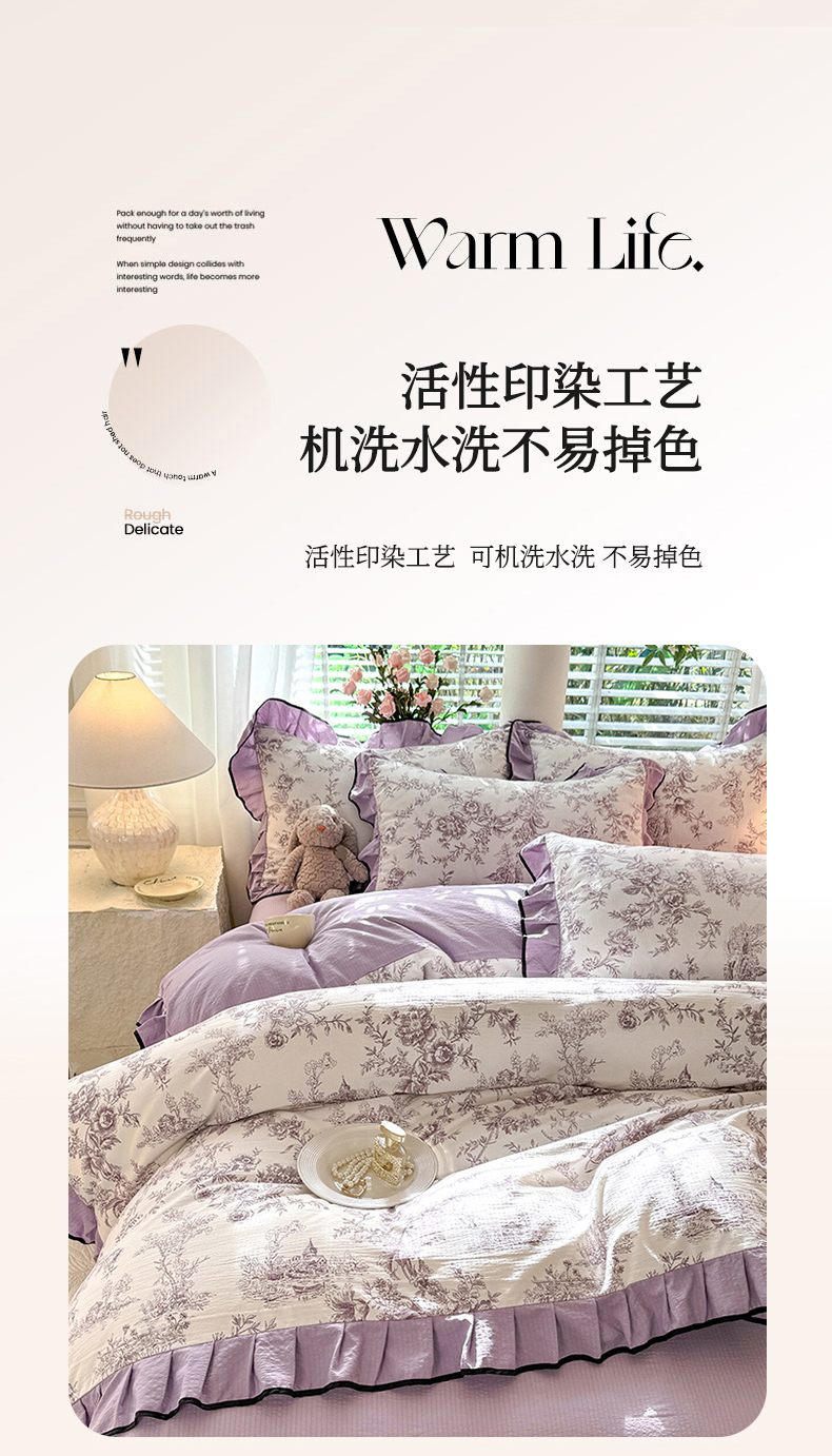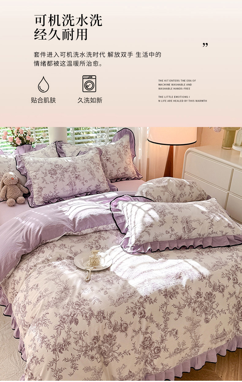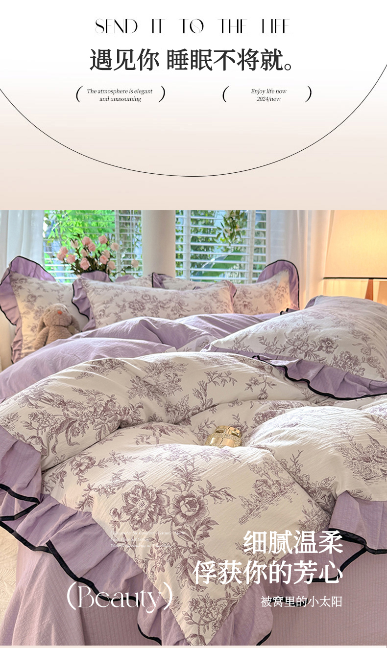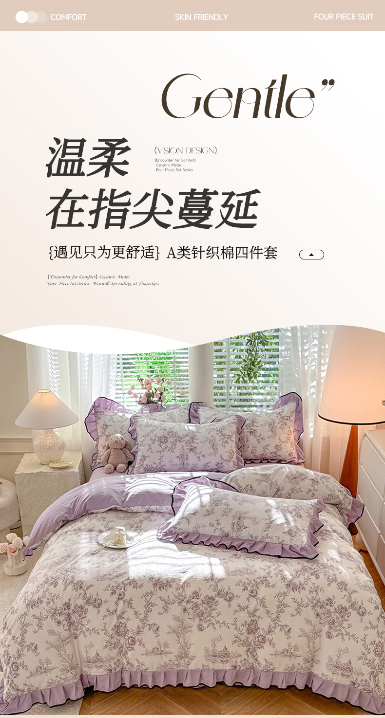 韩约家纺 2024秋冬加厚1针织棉时尚花边款四件套 紫韵