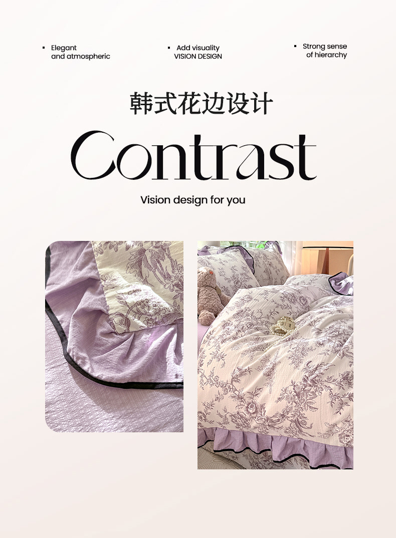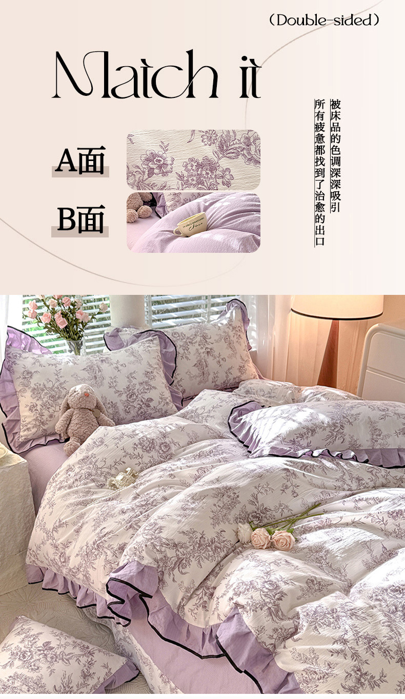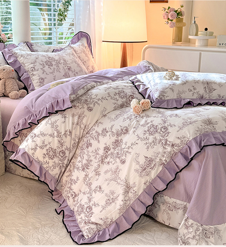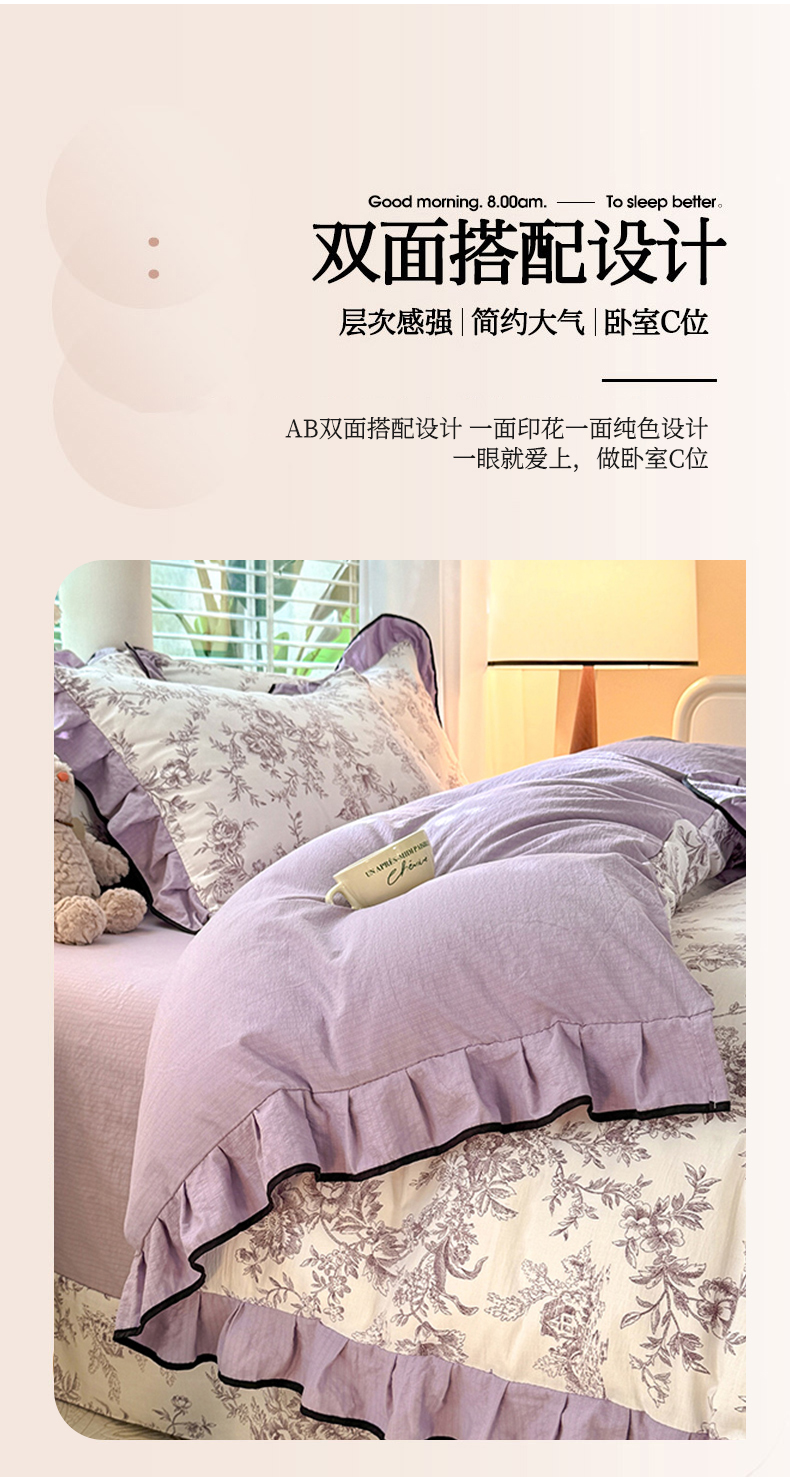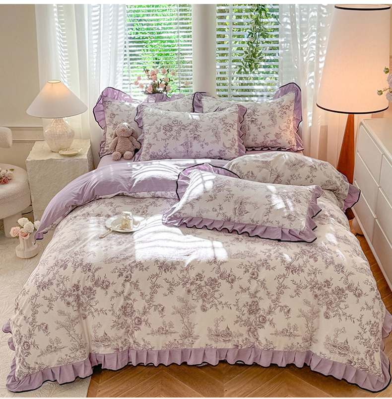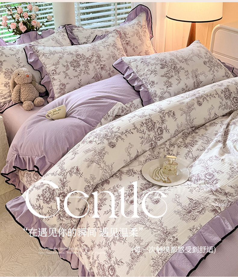 韩约家纺 2024秋冬加厚1针织棉时尚花边款四件套 紫韵
