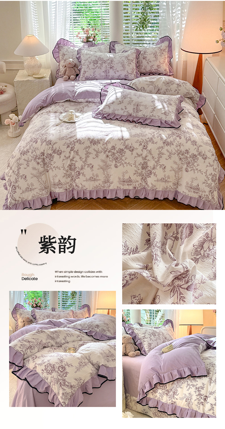 商品名称:韩约家纺 2024秋冬加厚1针织棉时尚花边款四件套 紫韵