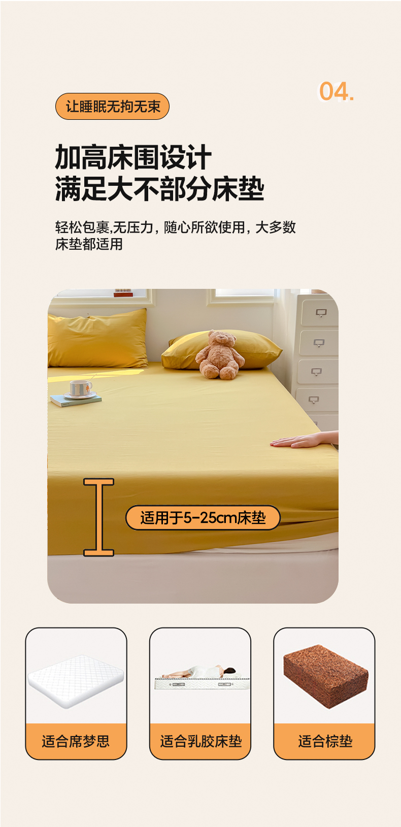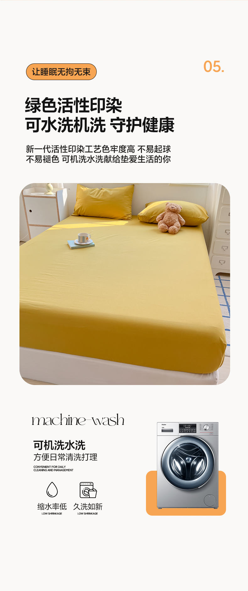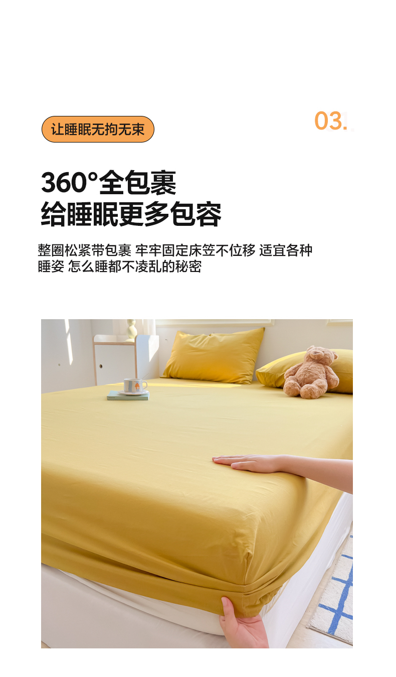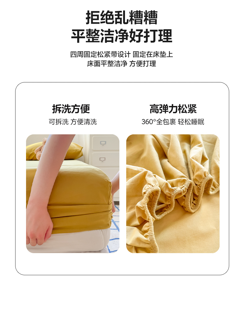 • 91家纺网 家纺一手货源 找家纺 韩巢家纺 2024新款A类纯色良品格子水洗棉床笠单件全包围防滑床单床罩保护套 A类黄色-床笠