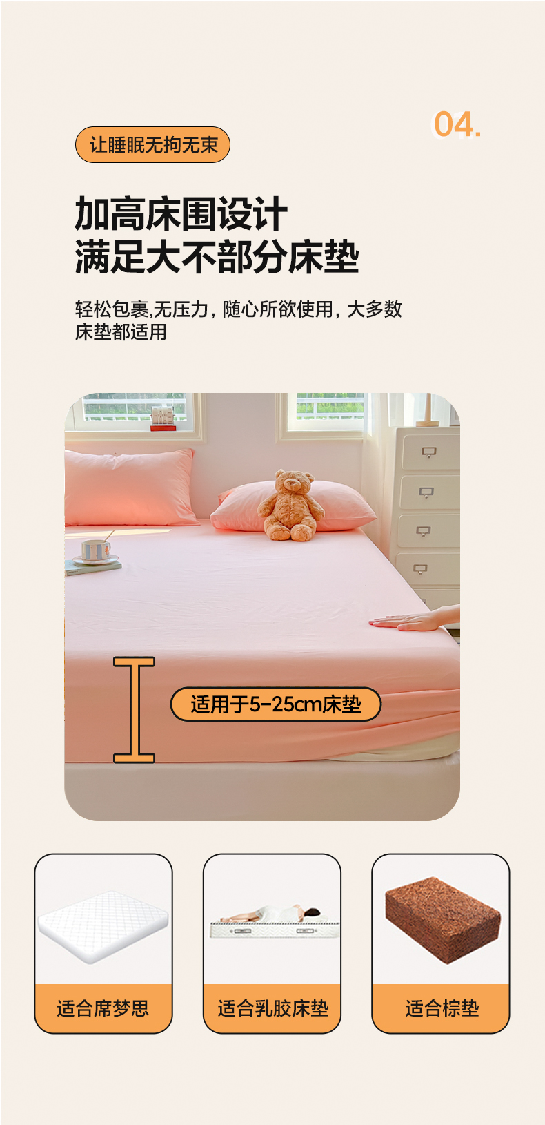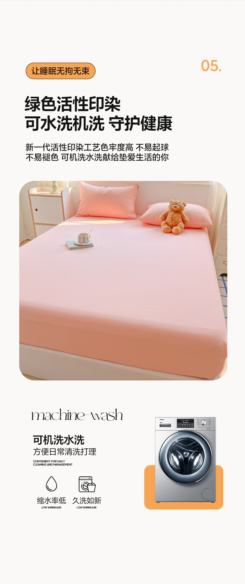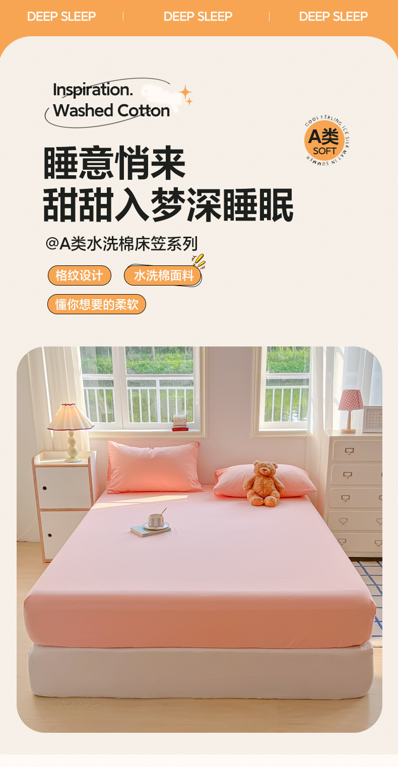• 91家纺网 家纺一手货源 找家纺 韩巢家纺 2024新款A类纯色良品格子水洗棉床笠单件全包围防滑床单床罩保护套 A类玉色-床笠