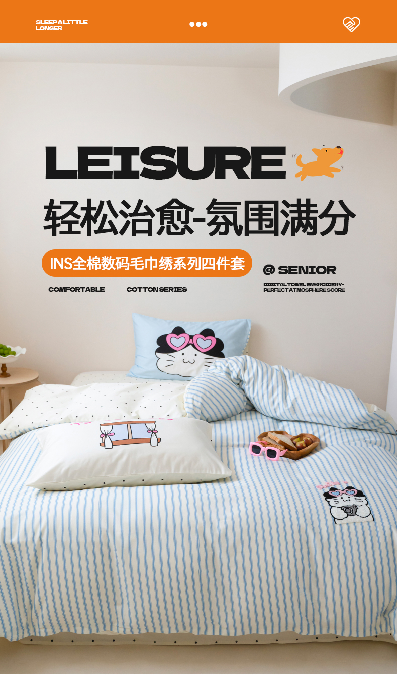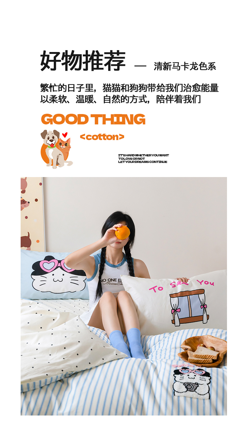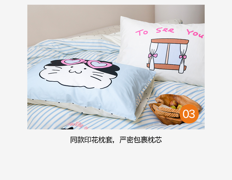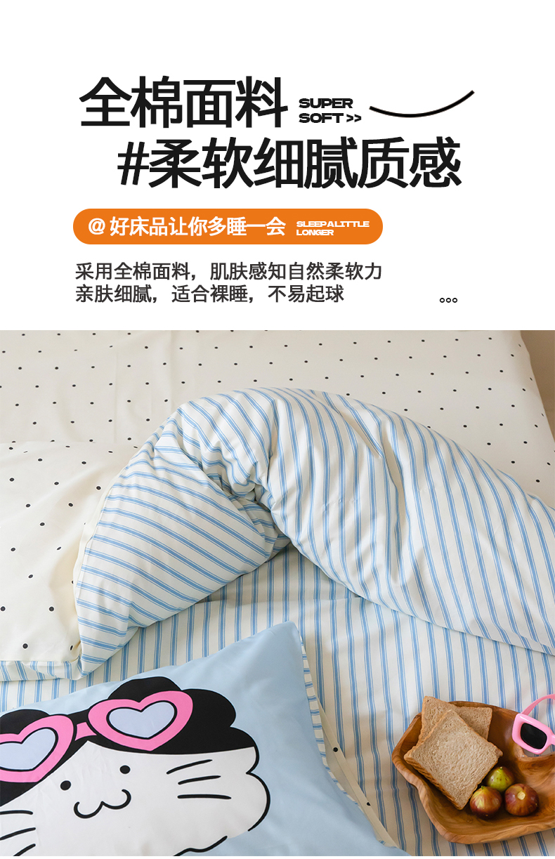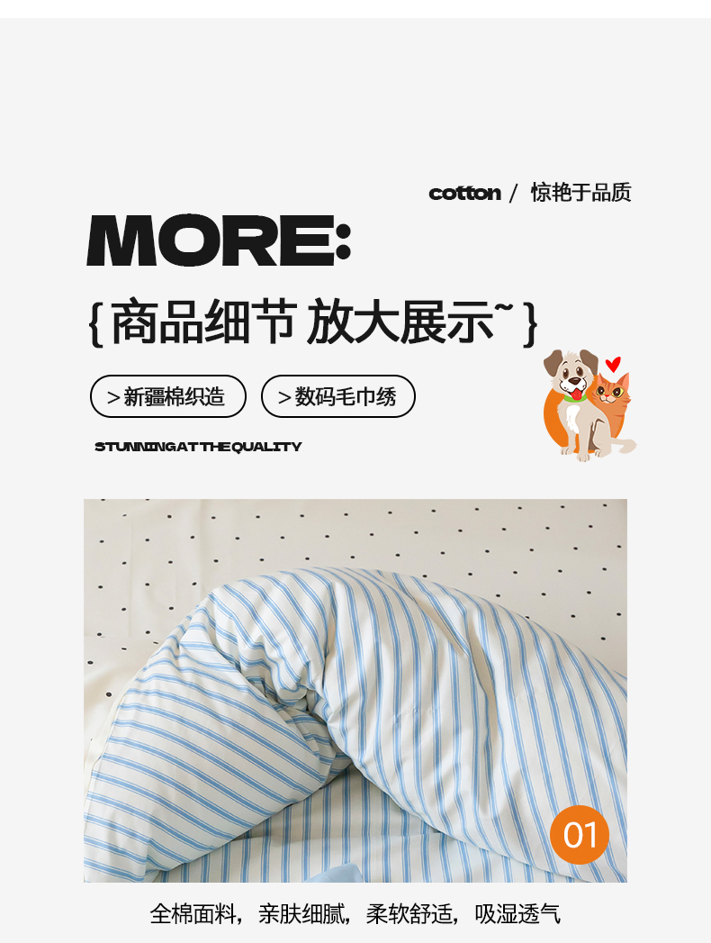 窝米2024毛巾绣x数码 13370全棉撞色卡通系列四件套 郊游猫