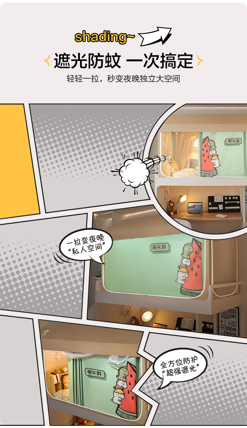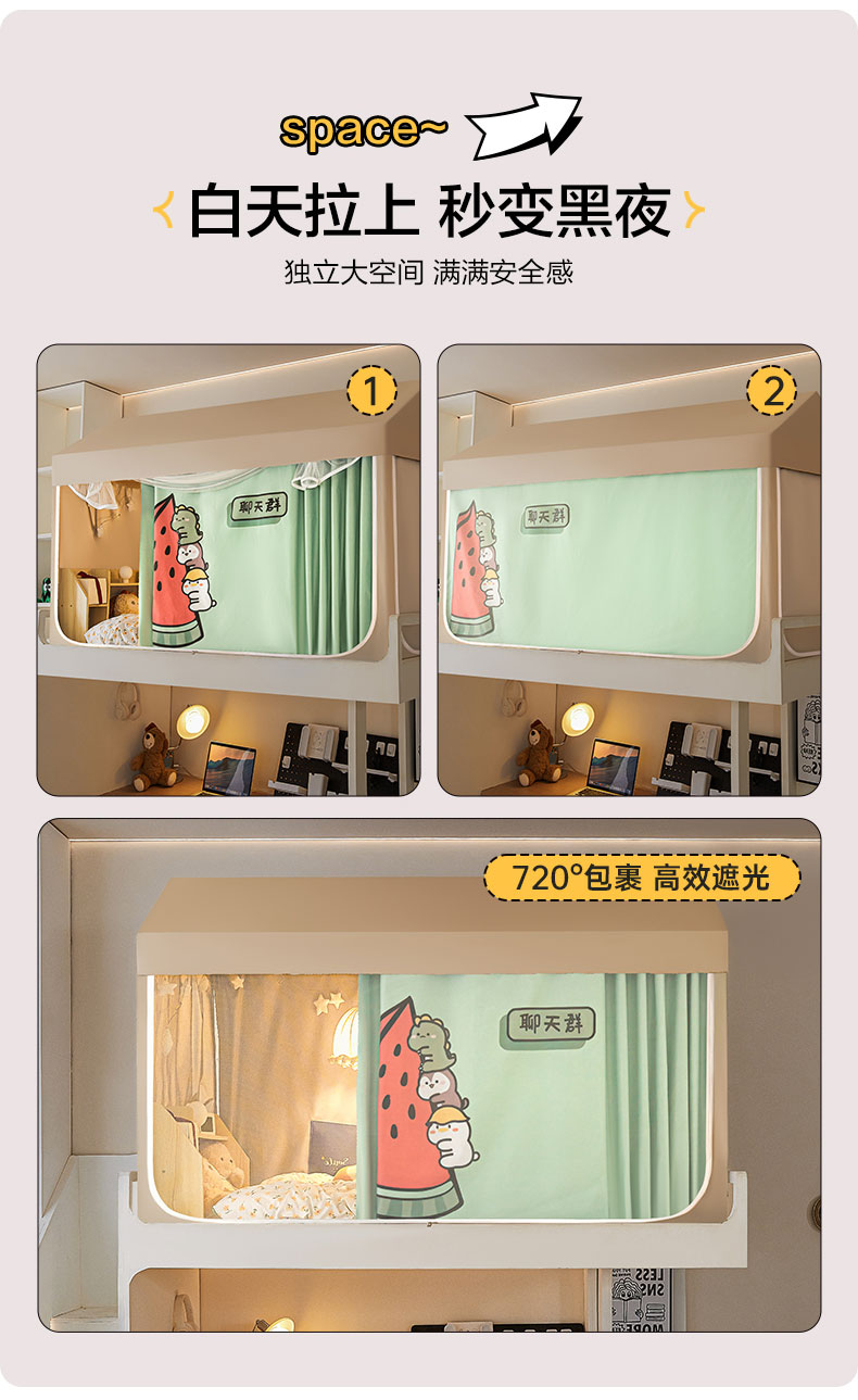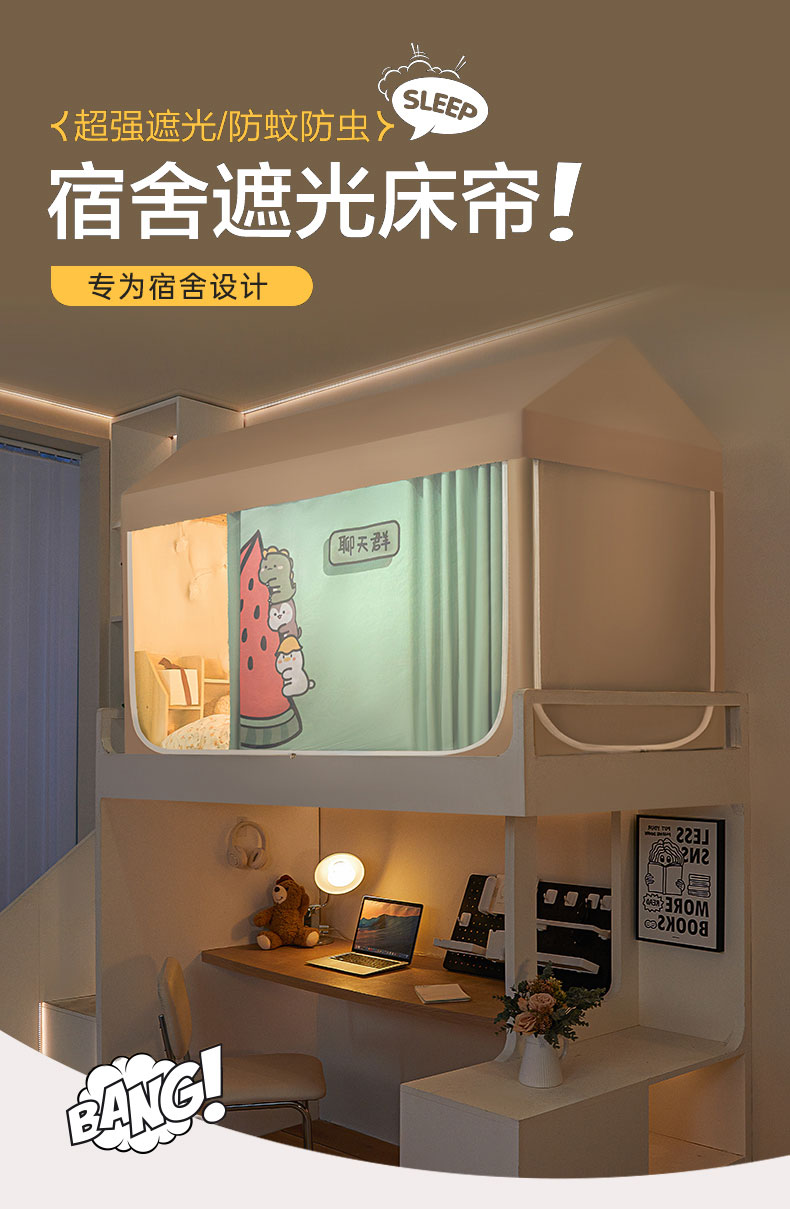 飞轮海蚊帐 2025新款强遮光防蚊学生蚊帐-XZ-99(靠墙帘选配)熊猫宝,熊猫宝