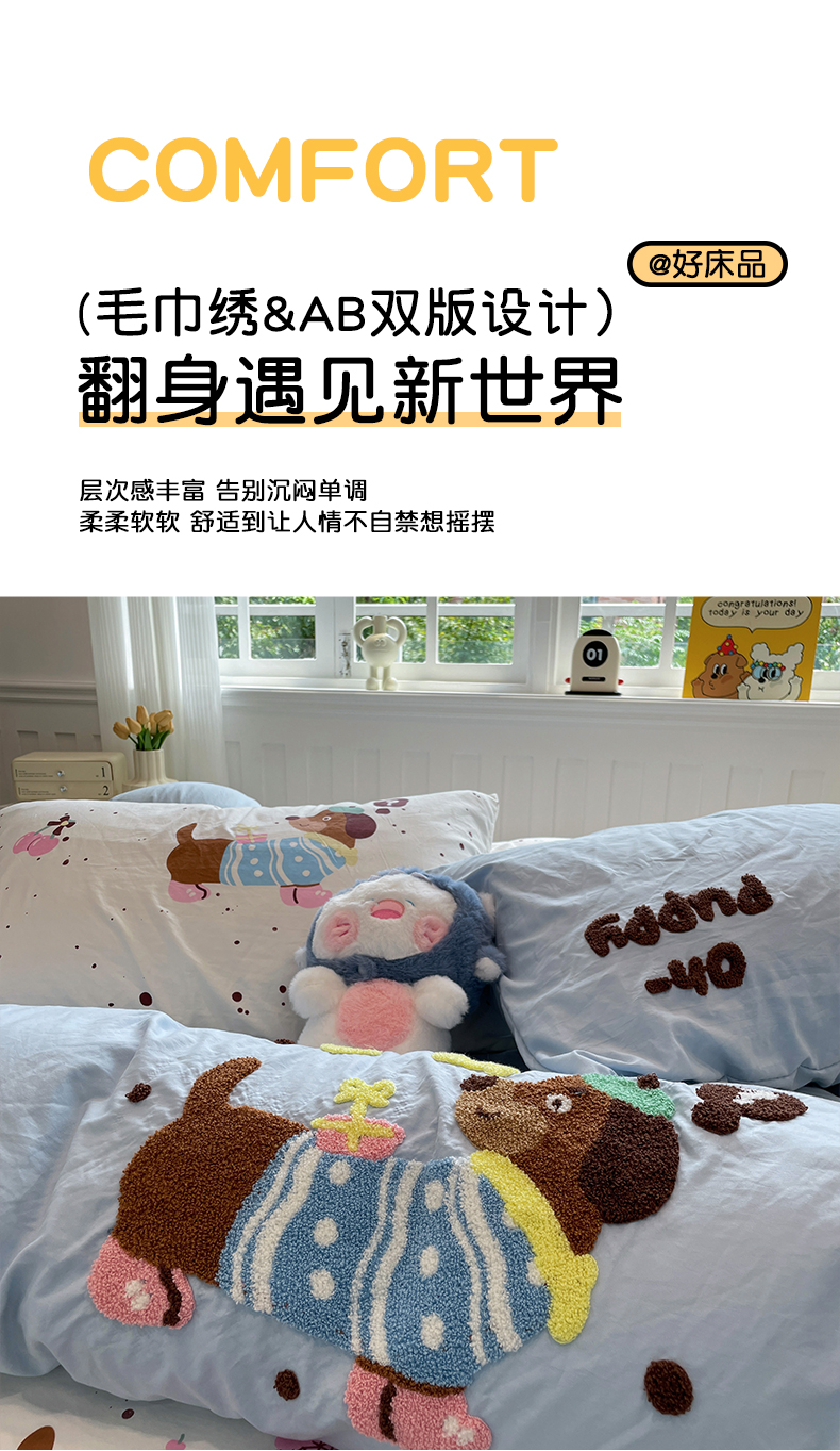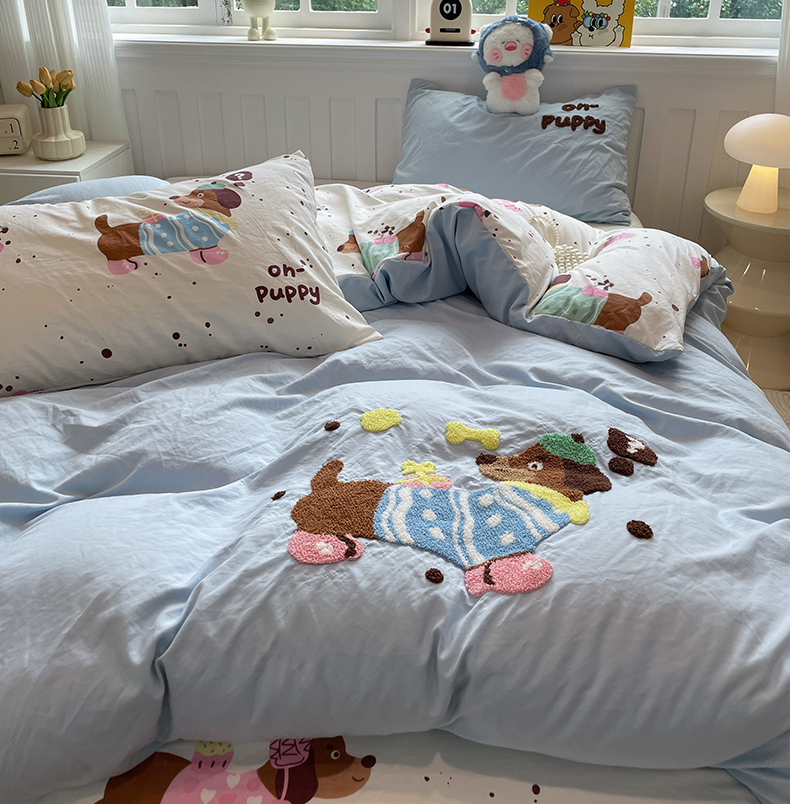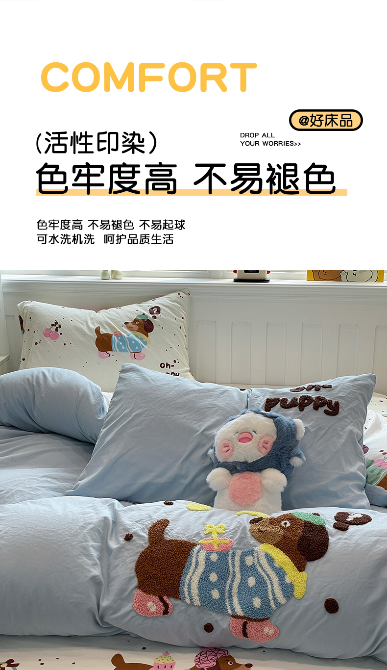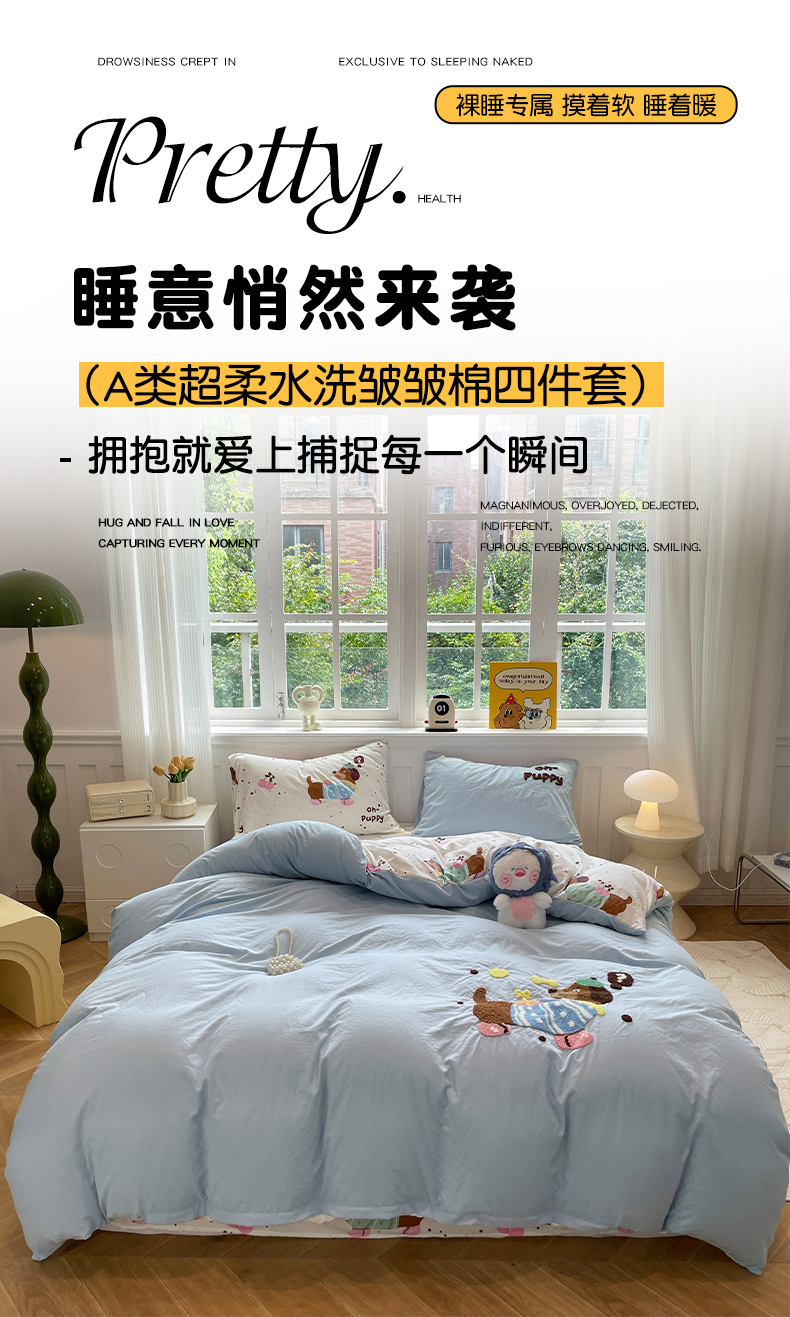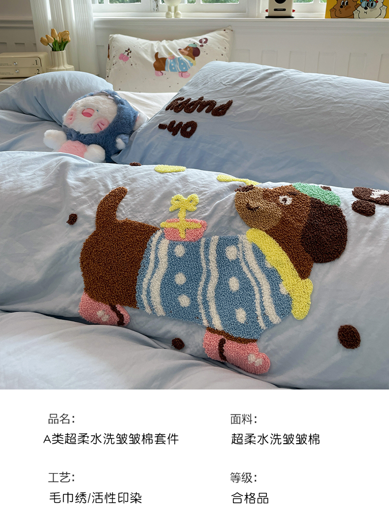 当前位置: 91家纺网 > 商品网购 > 床品套件 > 四件套 > 全棉普通四件套 > 奈颜 2024新款爆款超柔水洗皱皱棉四件套系列 顽皮狗-浅蓝