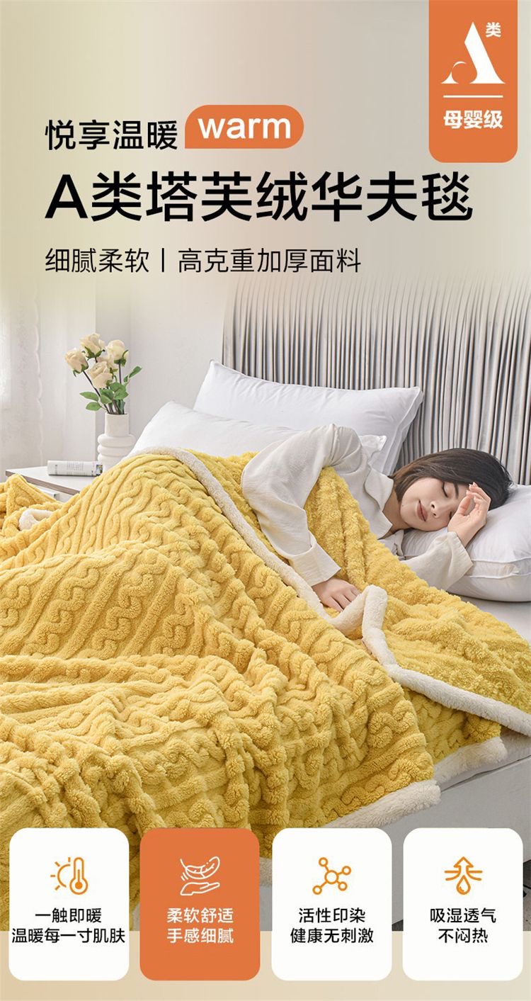 商品名称:鑫喜莱 2024新款单层塔芙绒毛毯 山吹黄