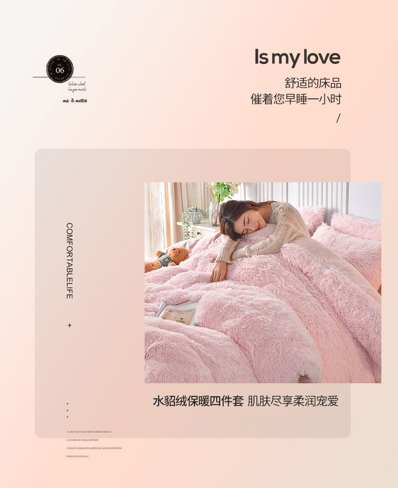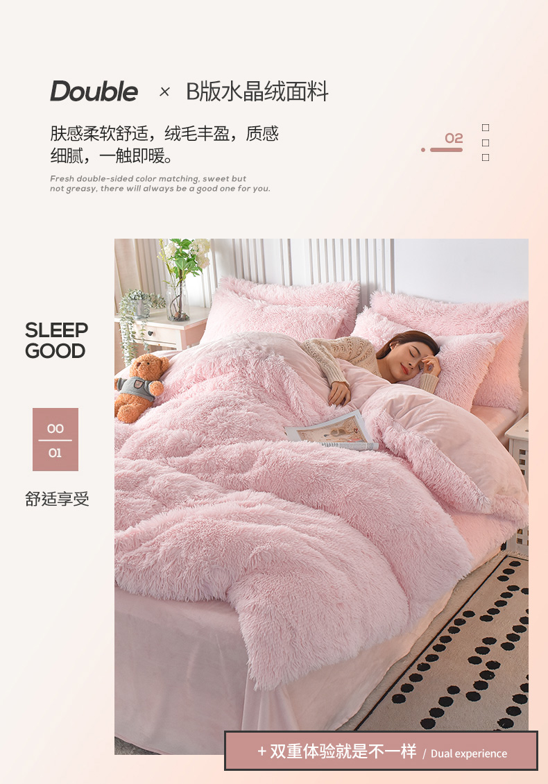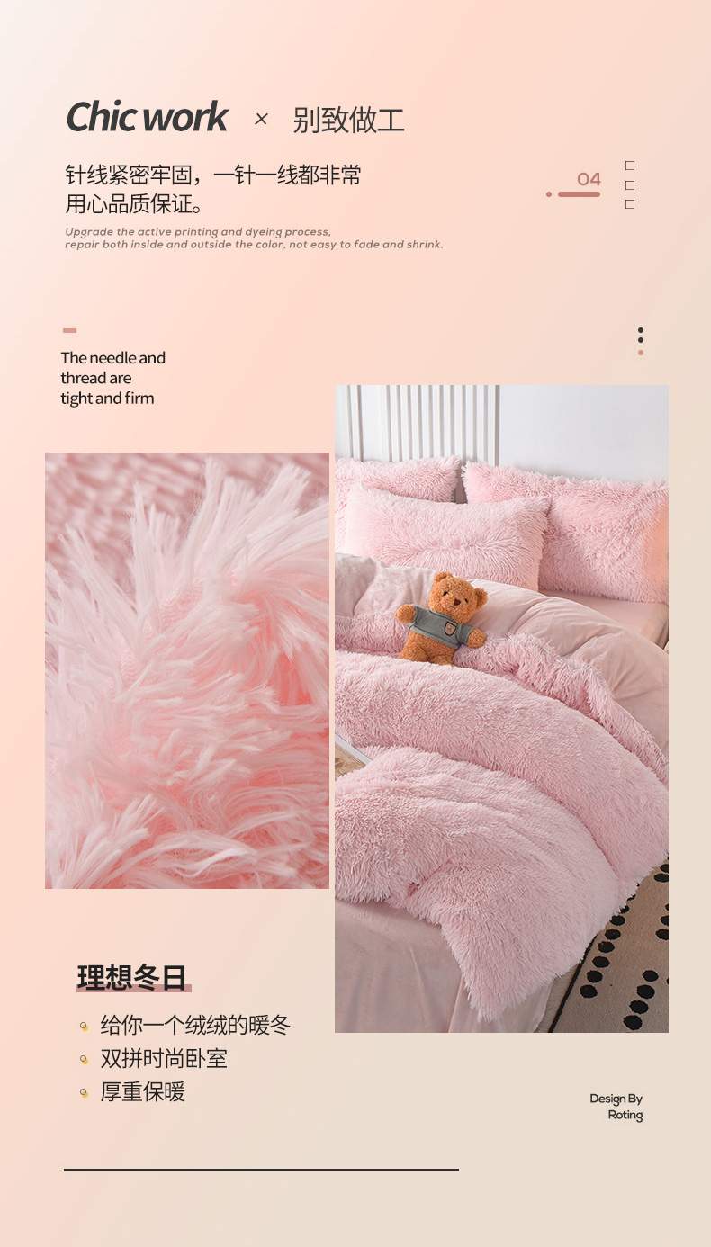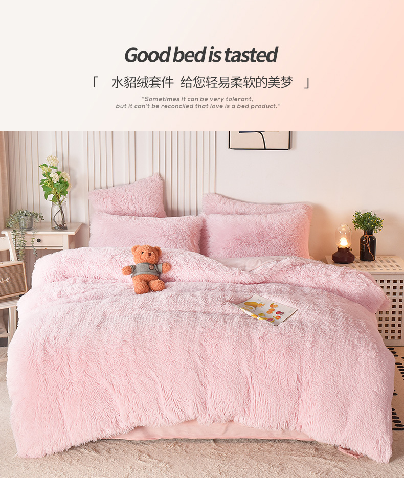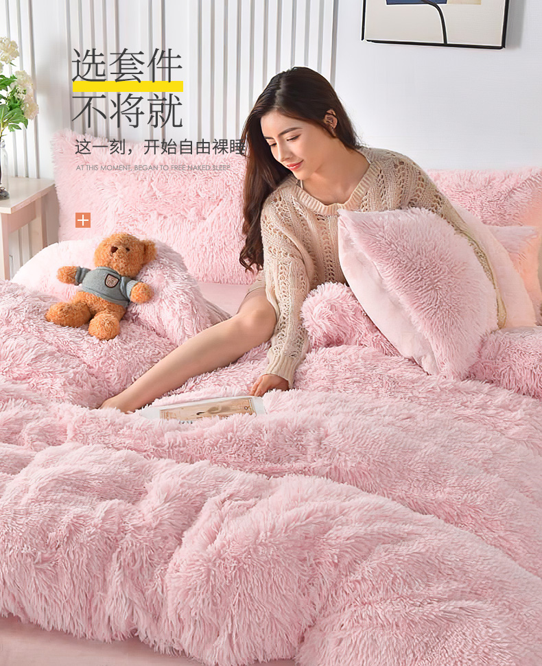 商品名称:鑫喜莱 2024新款长毛绒四件套 典雅粉