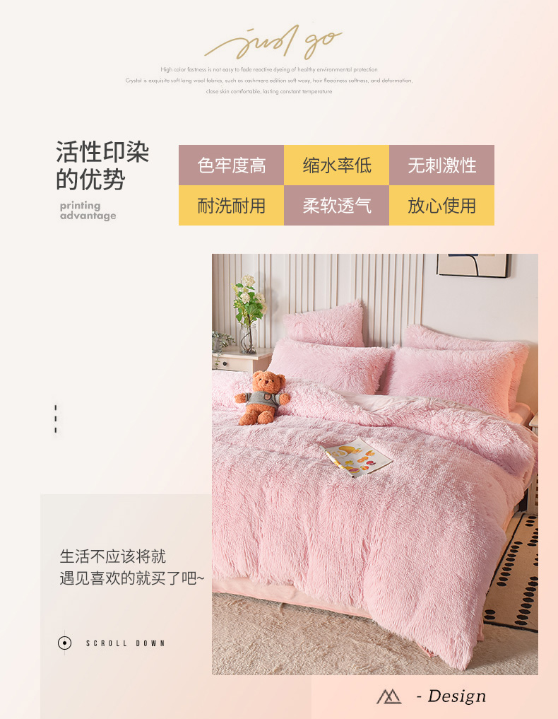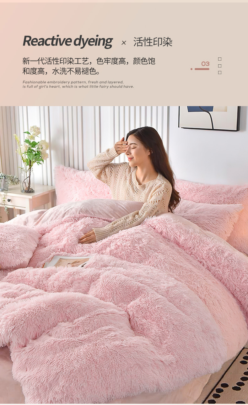 鑫喜莱 2024新款长毛绒四件套 典雅粉