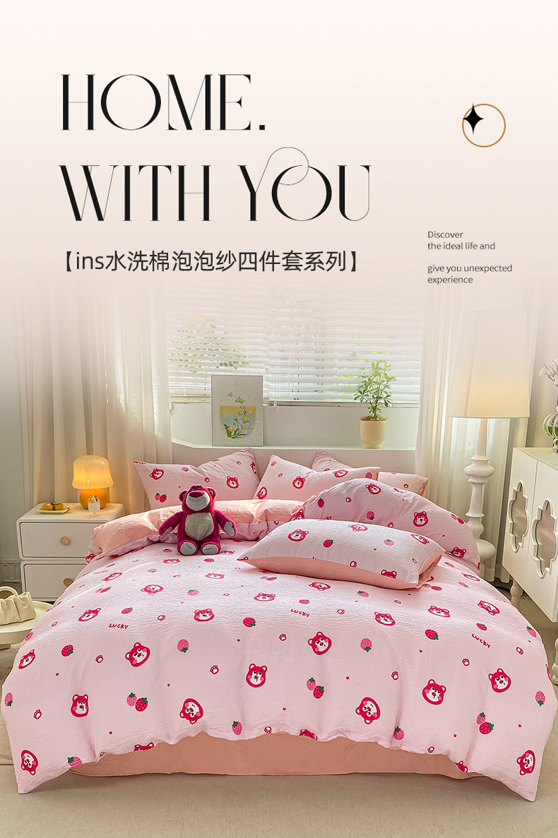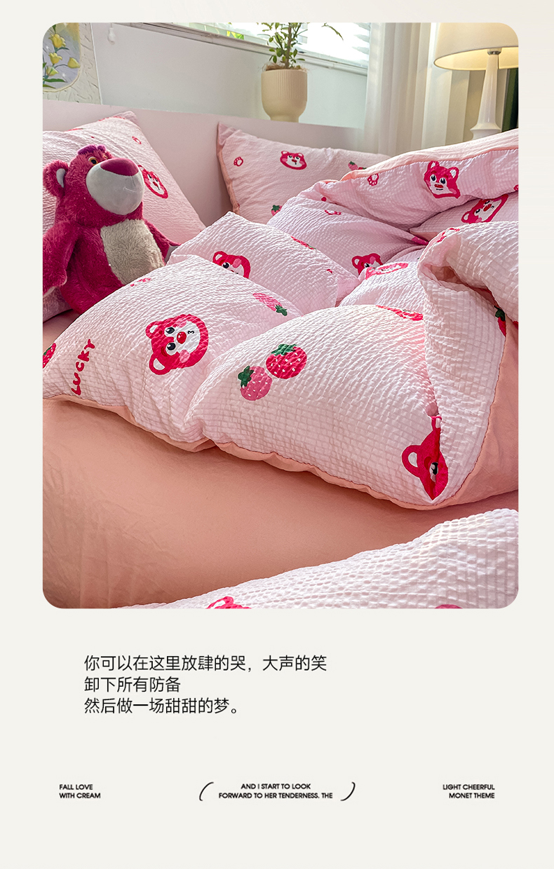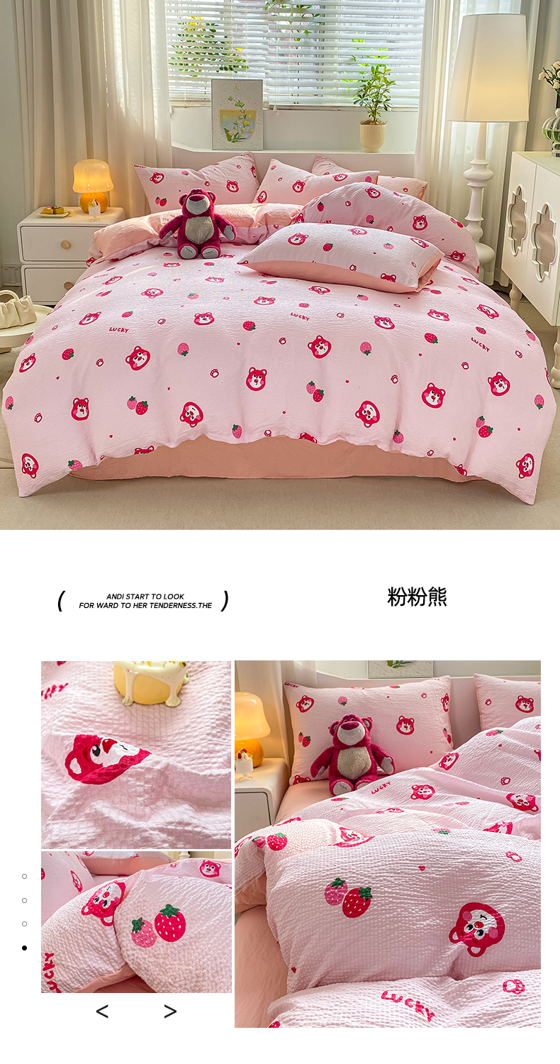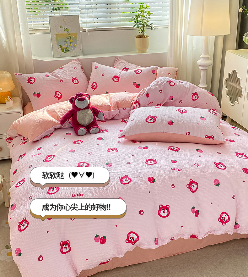 当前位置: 91家纺网 > 商品网购 > 床品套件 > 四件套 > 水洗棉四件套 > 悦织湾家纺 2025新款轻奢北欧风小清新印花水洗棉四件套 粉粉熊