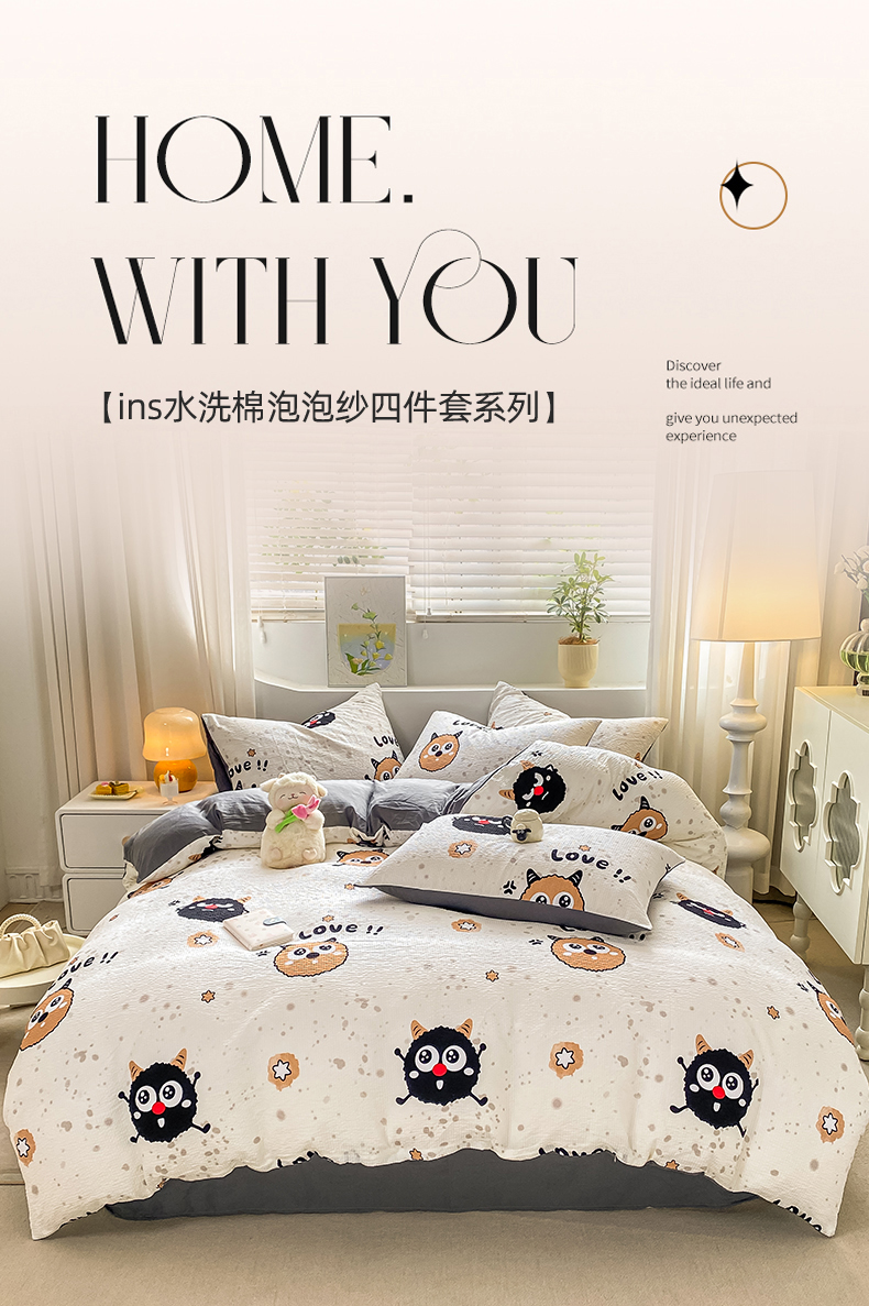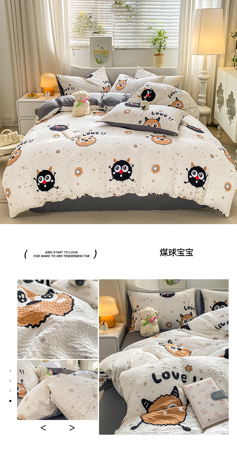 当前位置: 91家纺网 > 商品网购 > 床品套件 > 四件套 > 水洗棉四件套 > 悦织湾家纺 2025新款轻奢北欧风小清新印花水洗棉四件套 煤球宝宝