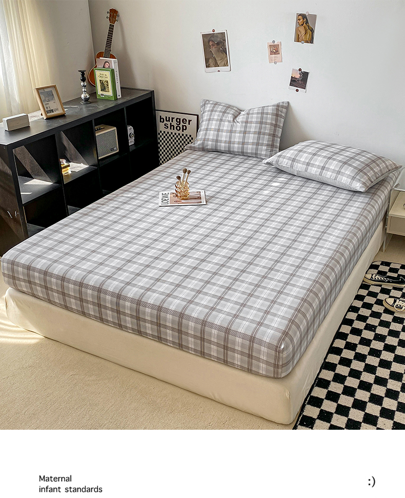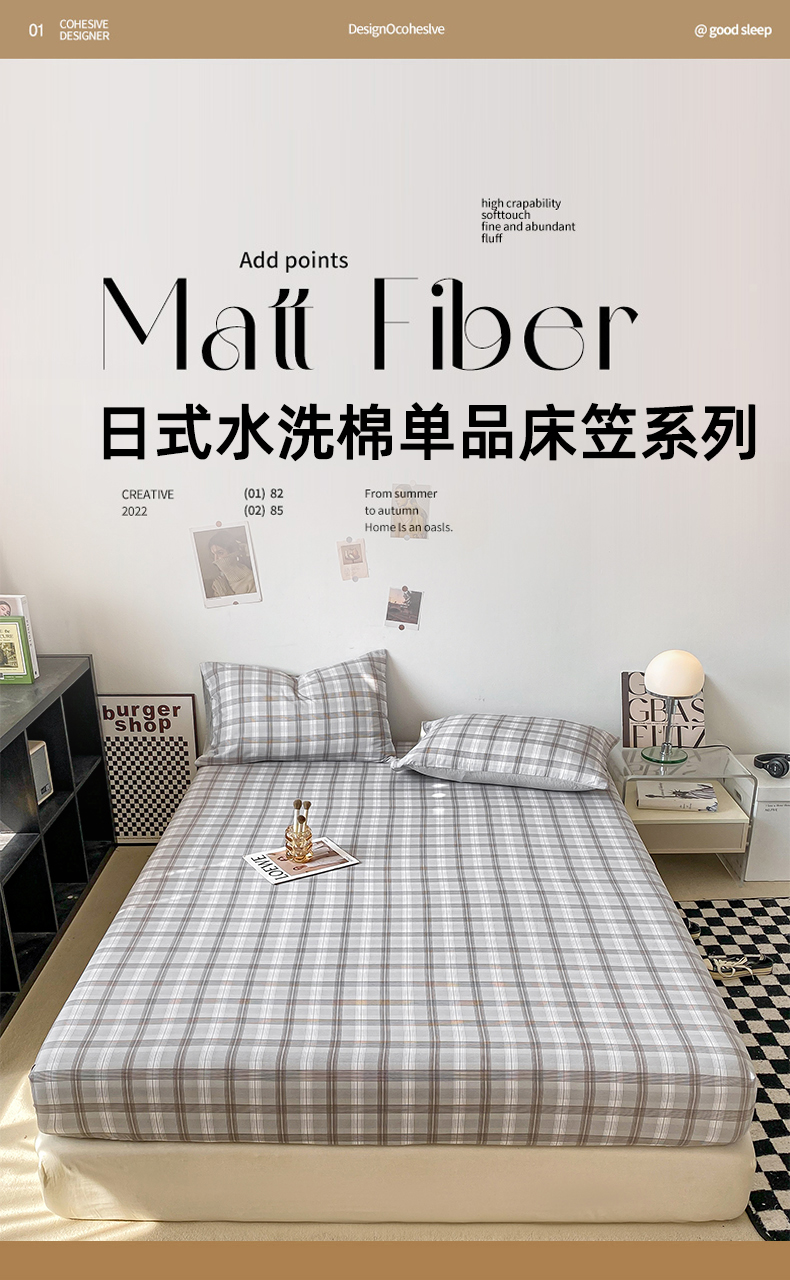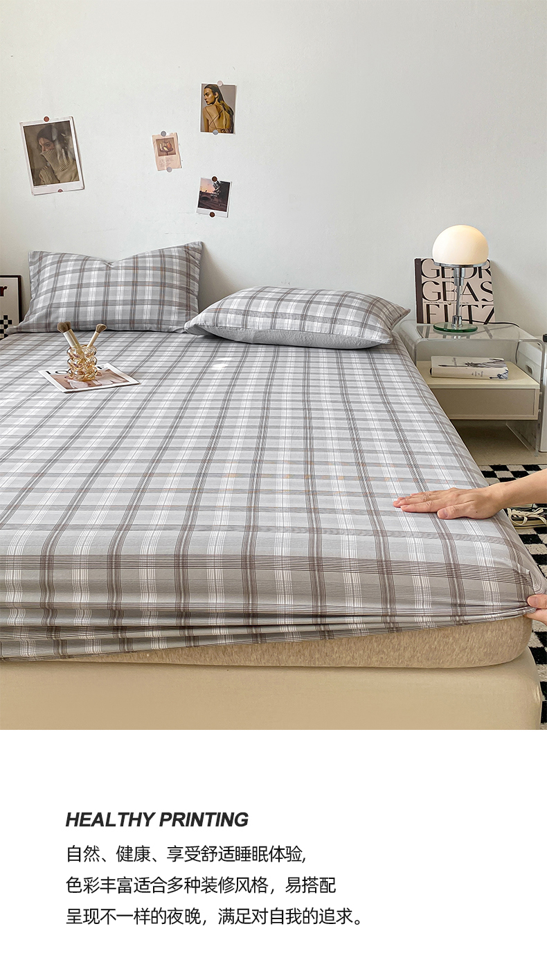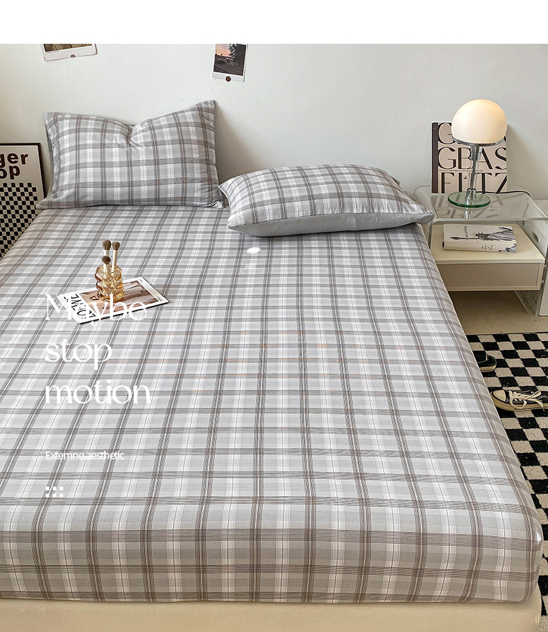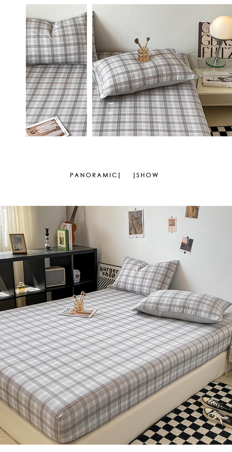 商品名称:悦织湾家纺 2025新款日式简约格子水洗棉单品床笠系列 幕落灰