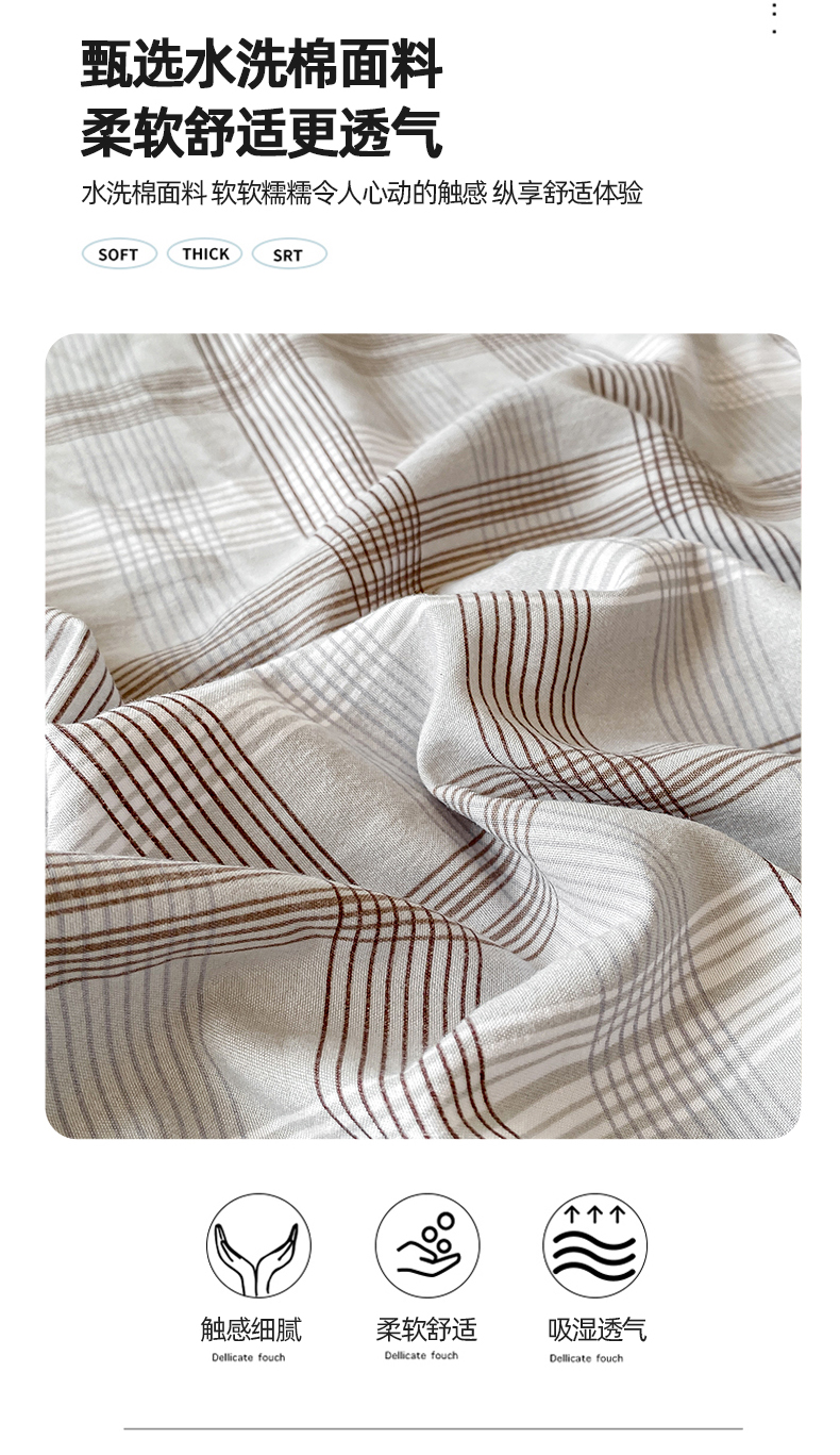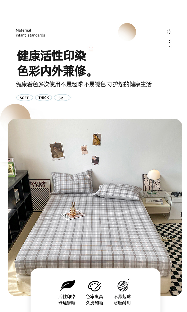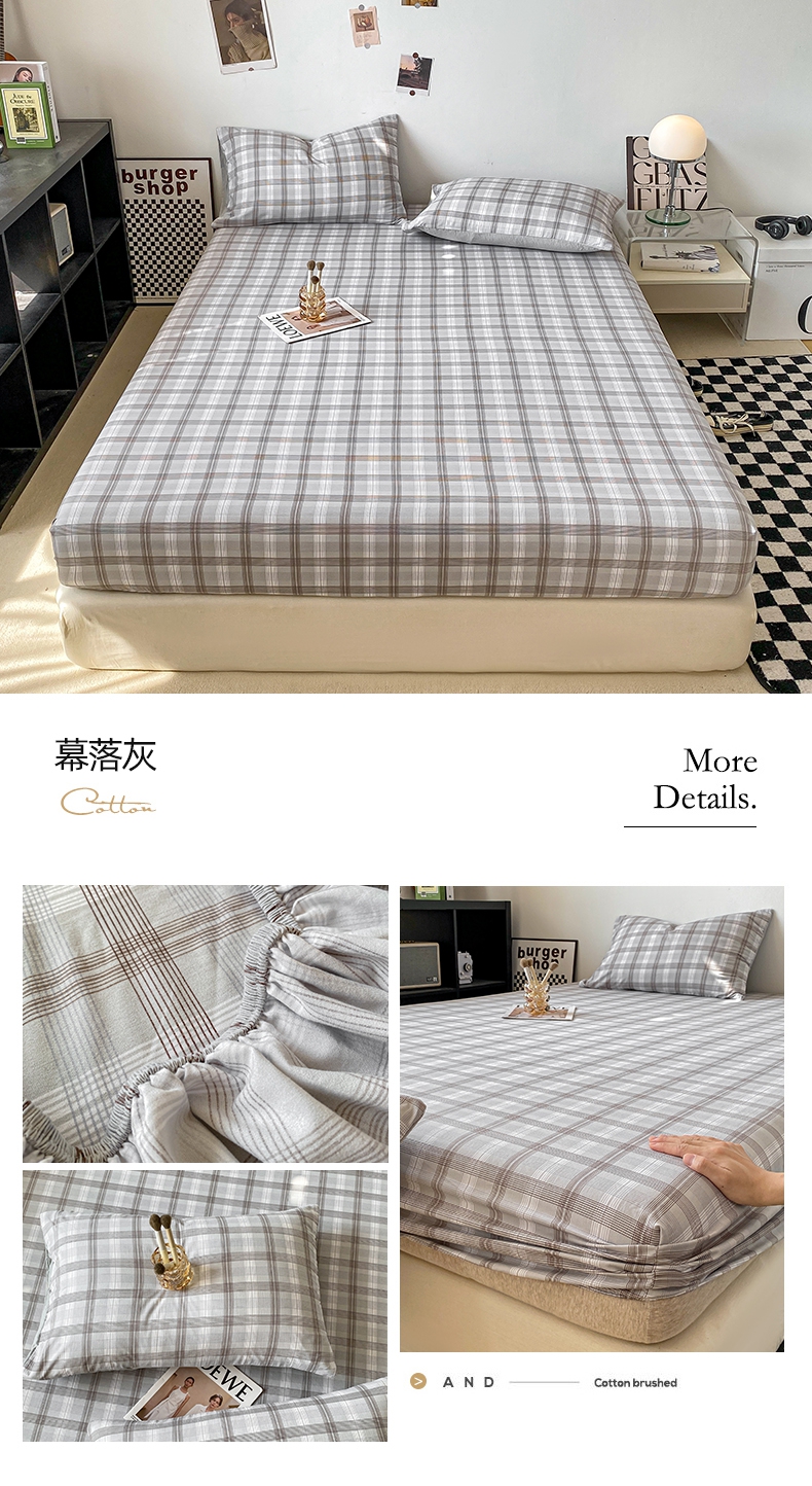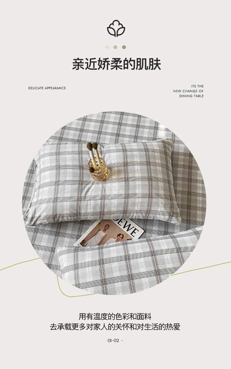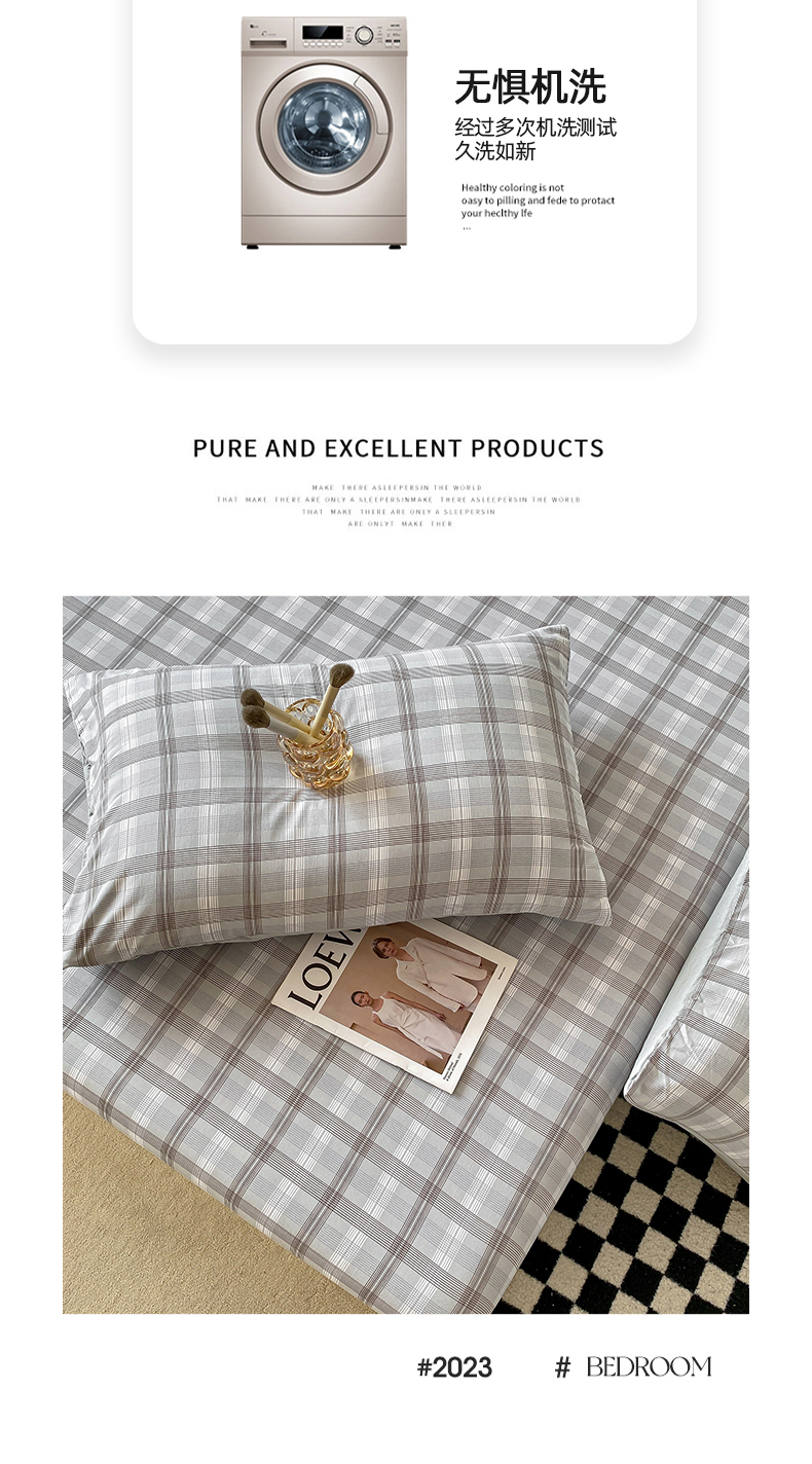 商品名称:悦织湾家纺 2025新款日式简约格子水洗棉单品床笠系列 幕落灰