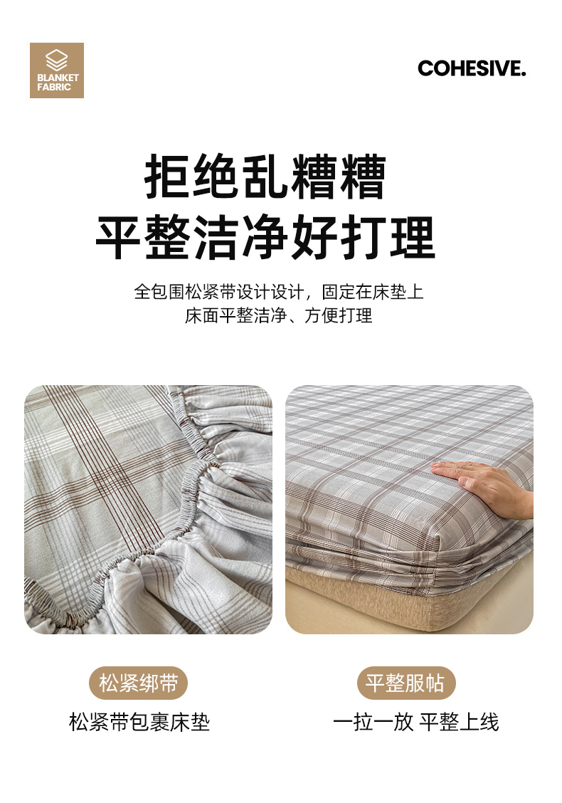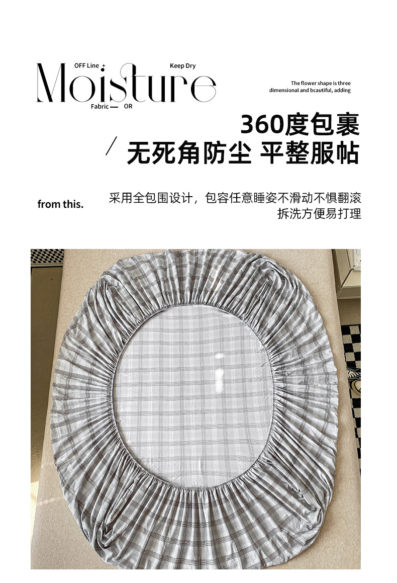 悦织湾家纺 2025新款日式简约格子水洗棉单品床笠系列 幕落灰