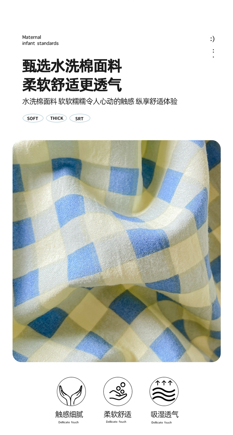 商品名称:悦织湾家纺 2025新款日式简约格子水洗棉单品被套系列 布丁绿