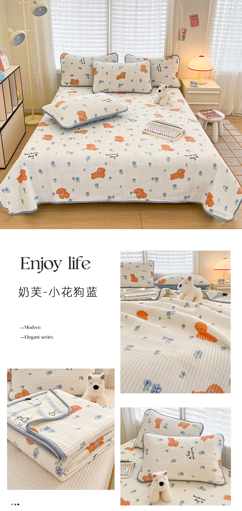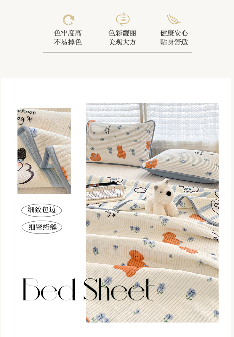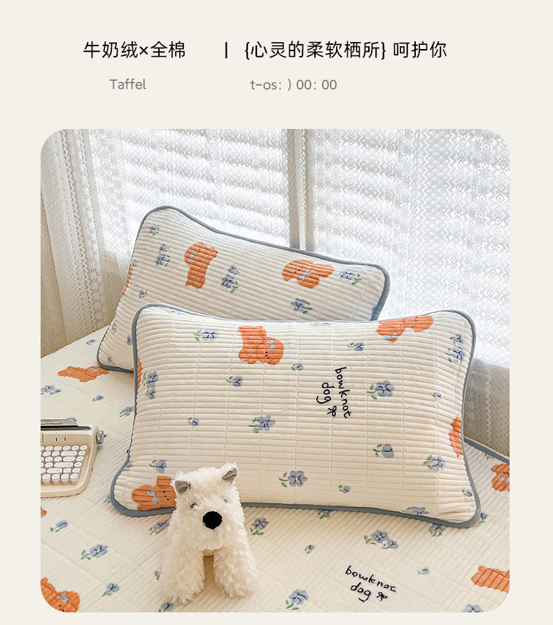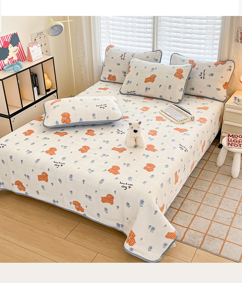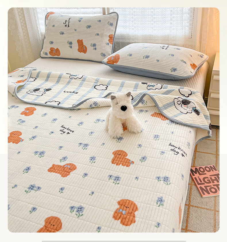 茉夕家纺 2024新款奶芙纯棉印花牛奶绒水洗床盖 奶芙-小花狗蓝