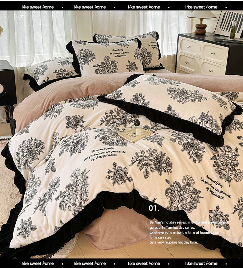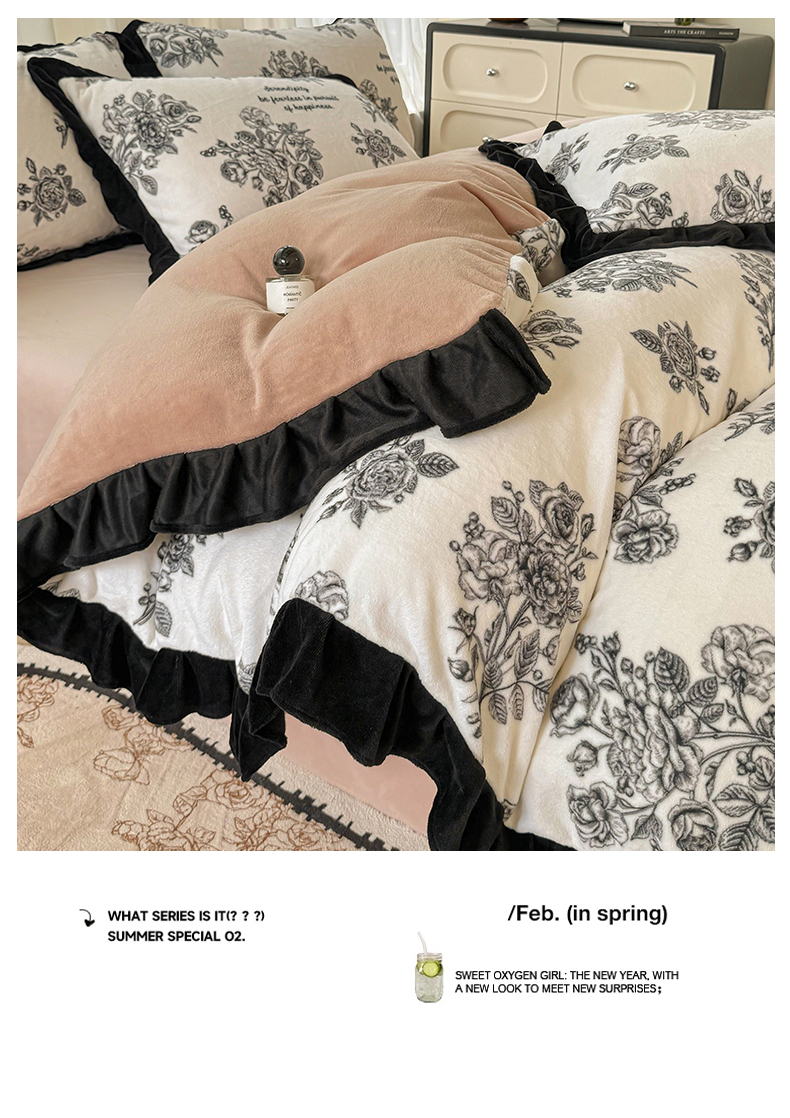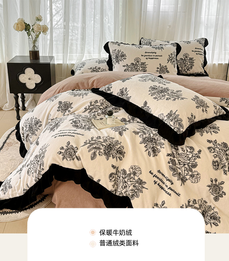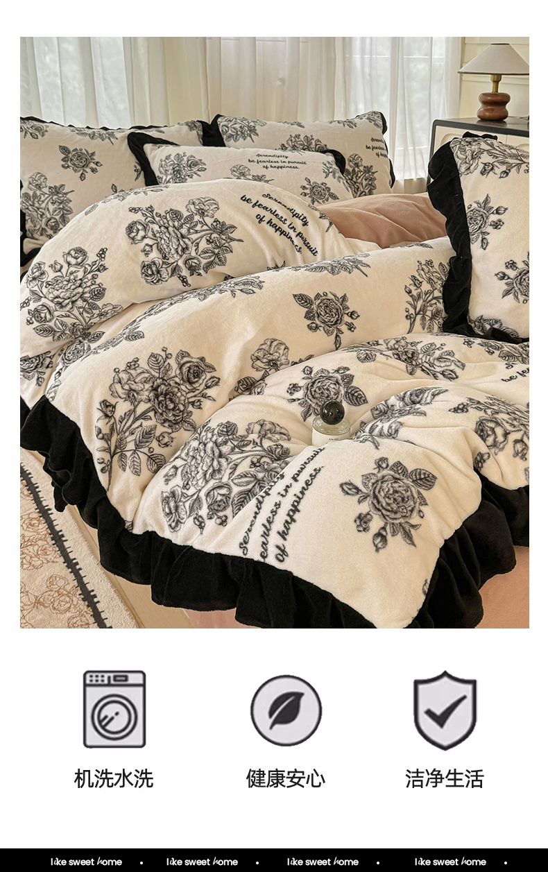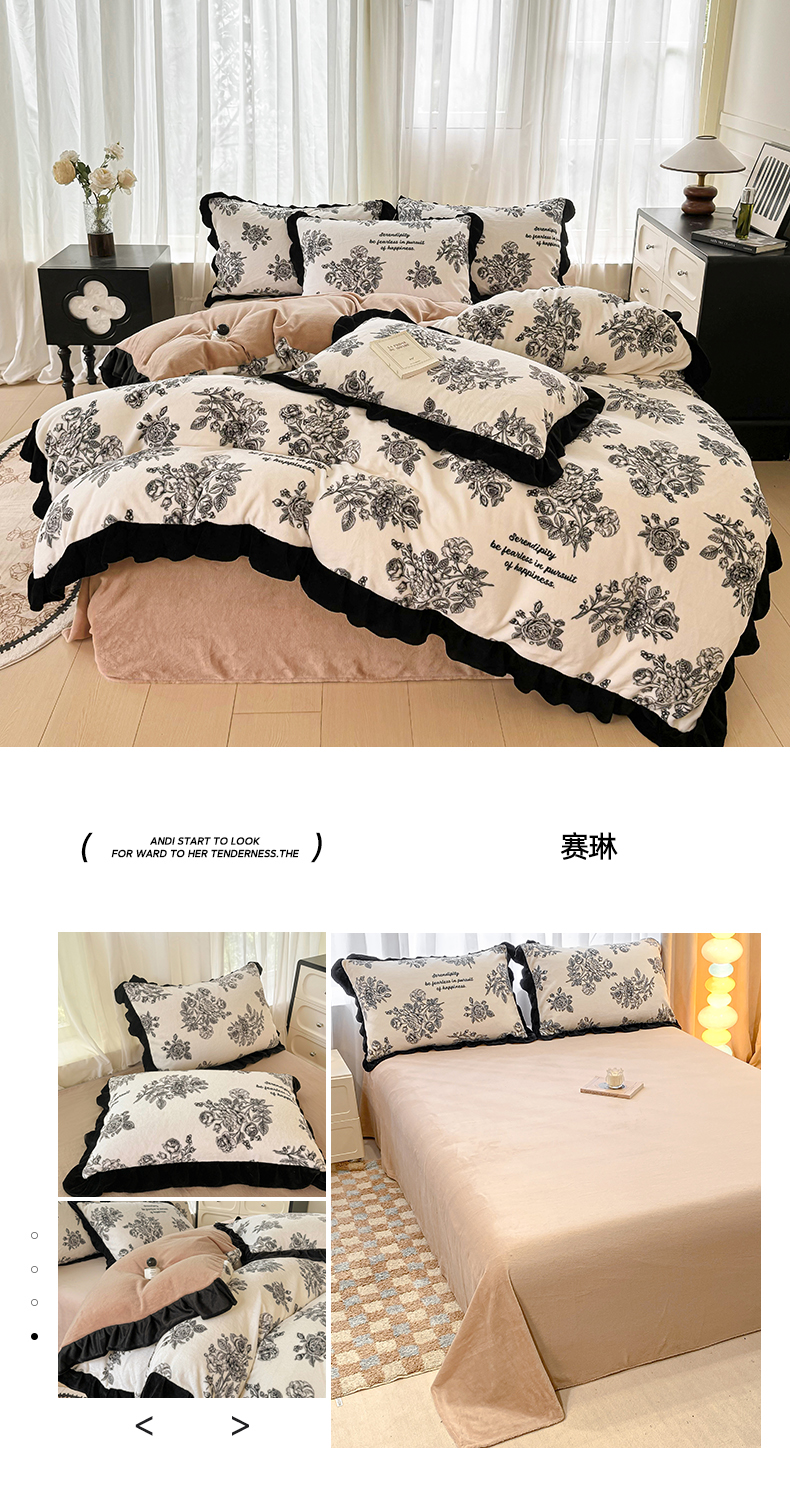 商品名称:米莱家纺 2024新款赫本系列花边牛奶绒四件套 赛琳
