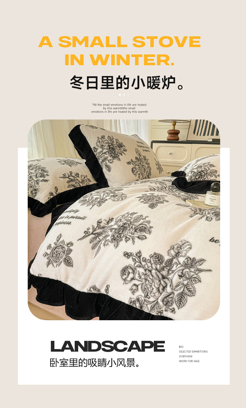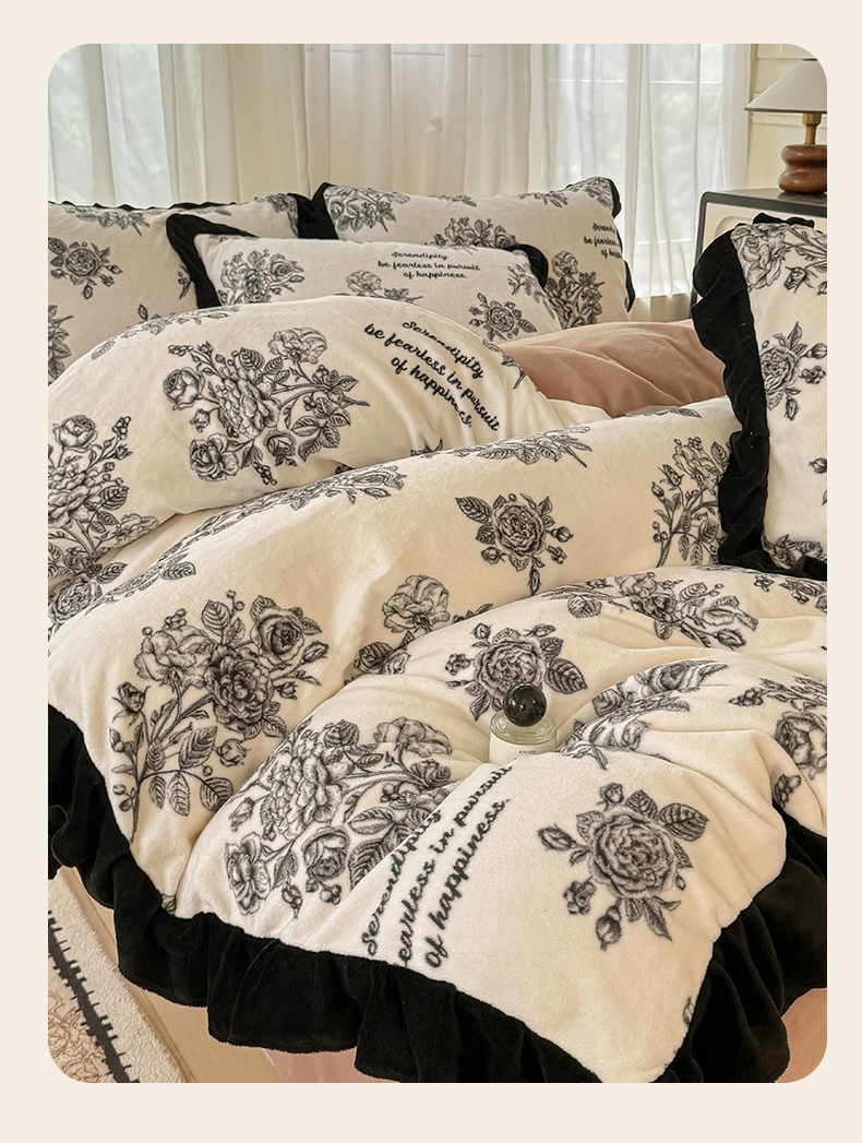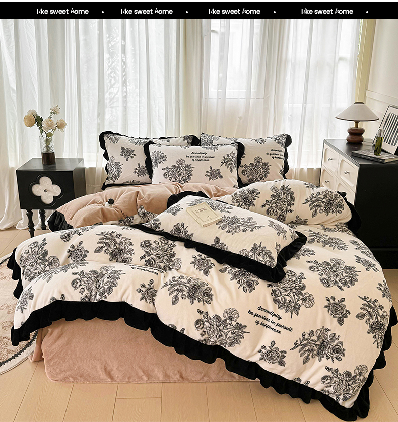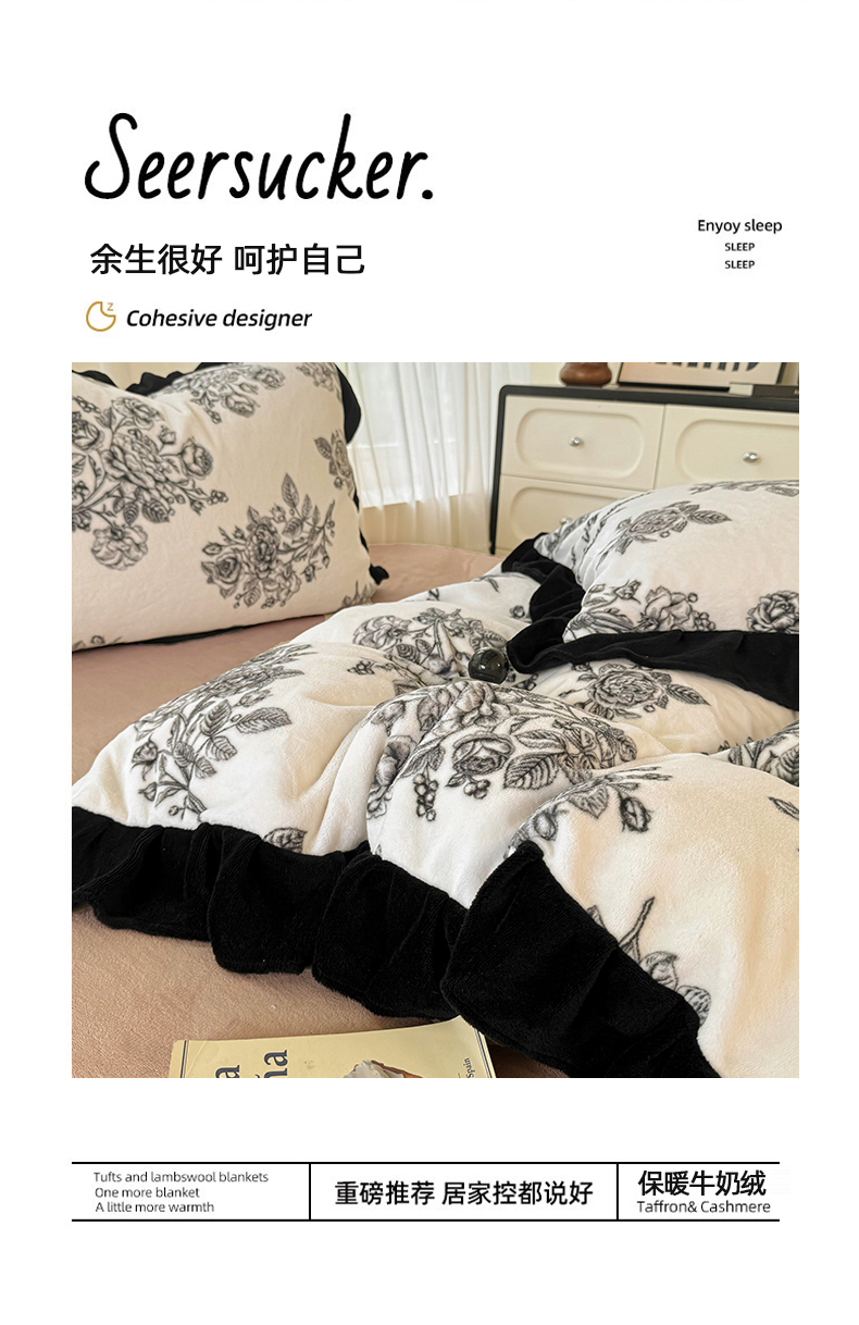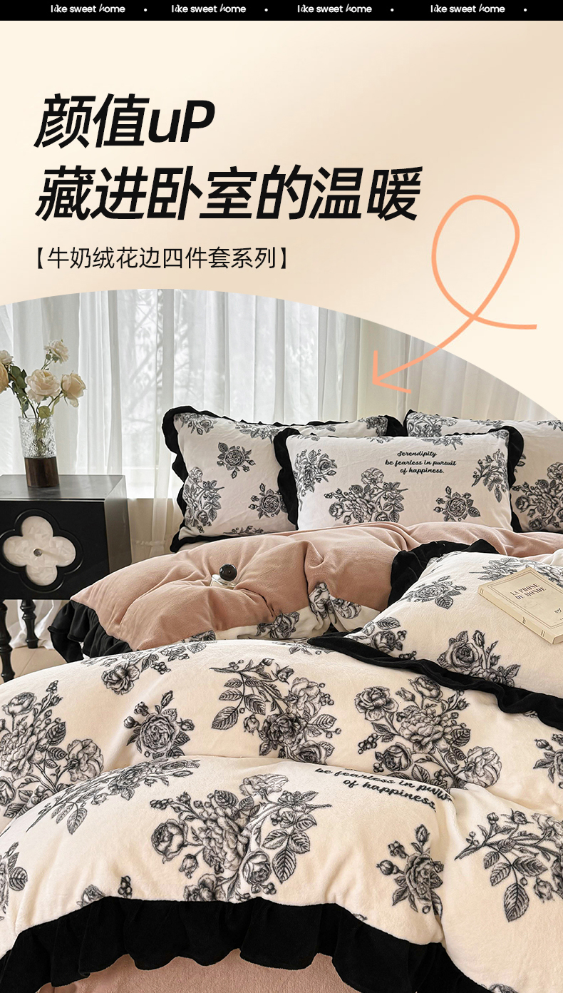 米莱家纺 2024新款赫本系列花边牛奶绒四件套 赛琳