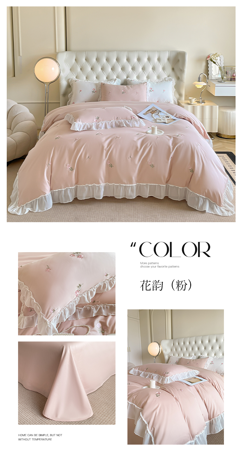 (总)理想家家纺 2025新款纯棉轻奢刺绣四件套-小秘密系列场景二,小秘密 粉,小秘密 黄,小秘密 蓝