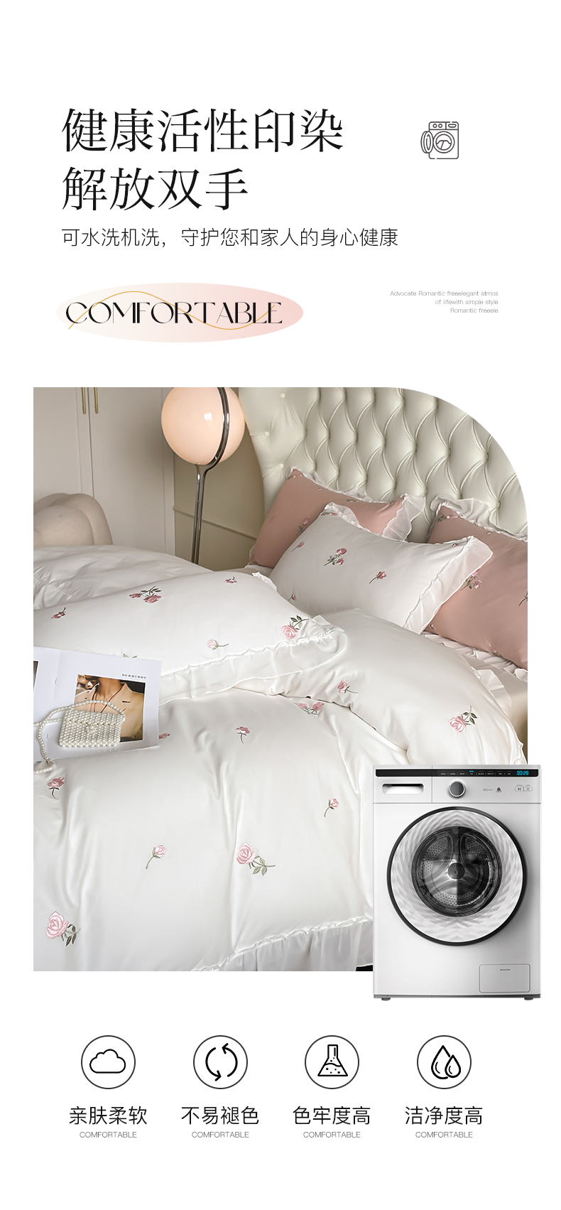 商品名称:(总)理想家家纺 2024新款全棉轻奢刺绣四件套-花韵
