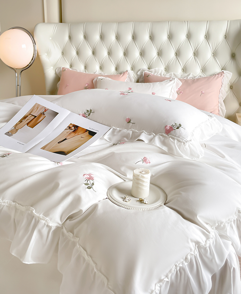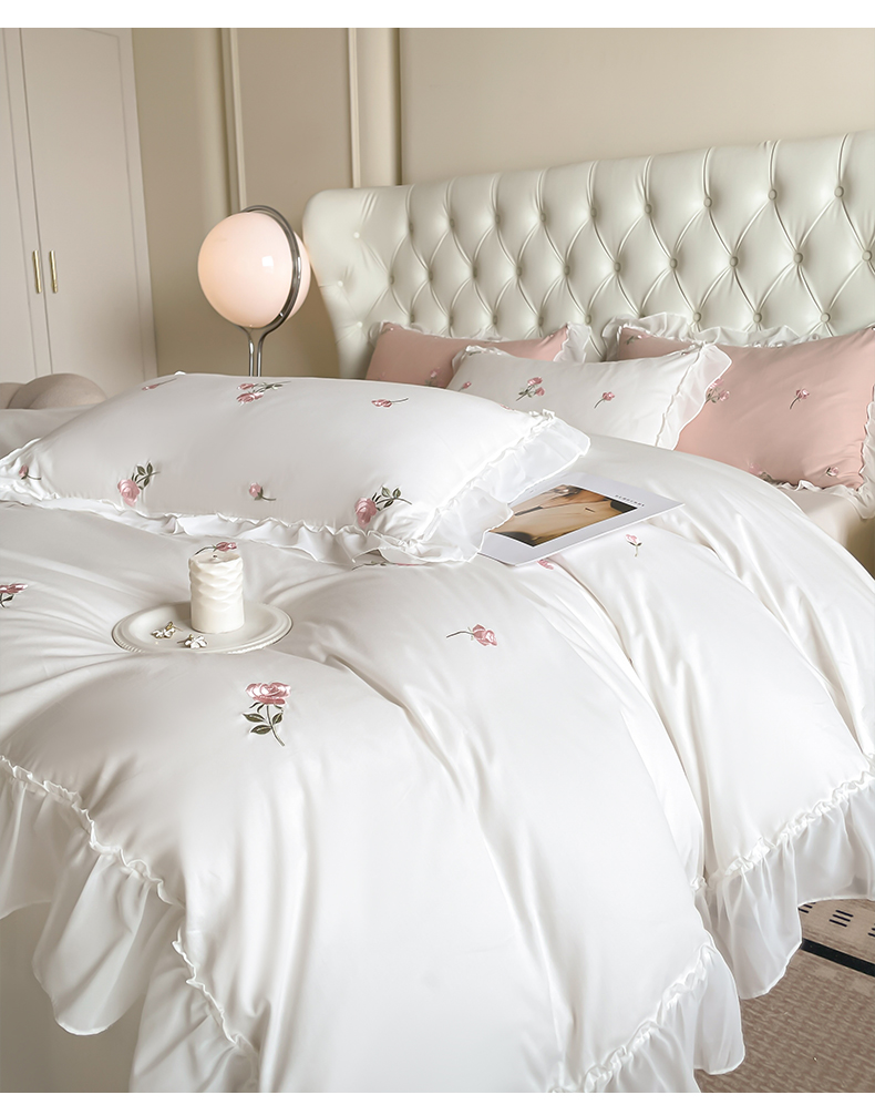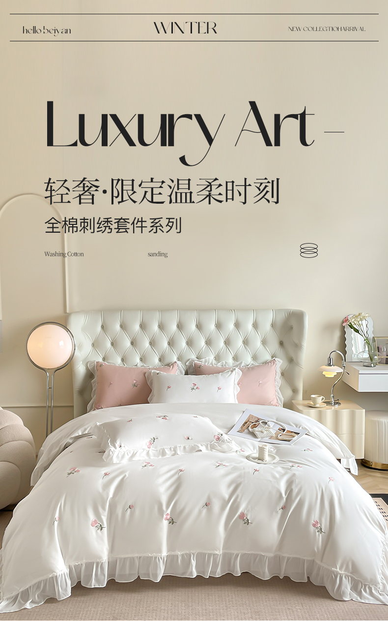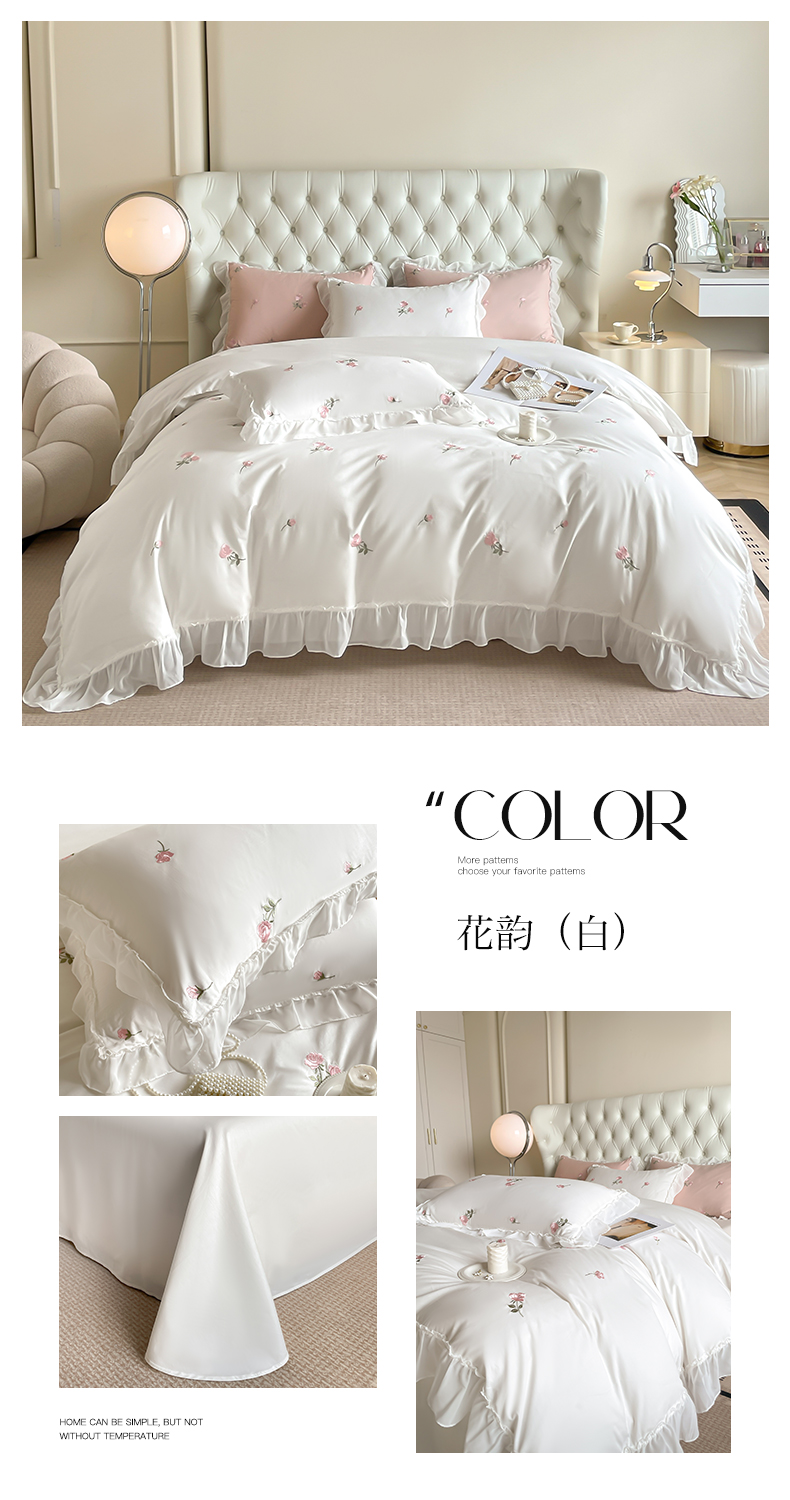 (总)理想家家纺 2025新款纯棉轻奢刺绣四件套-小秘密系列,小秘密-白,小秘密-粉,小秘密-蓝