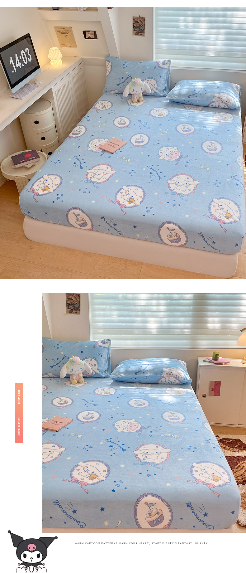 2024新款厚实保暖牛奶绒三丽鸥单品床笠床单 绒-X星星玉桂狗