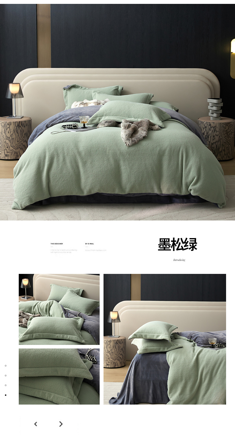 金奇达家纺 2025秋冬保暖加厚绒类四件套多莉羊绒-德尔菲 墨松绿